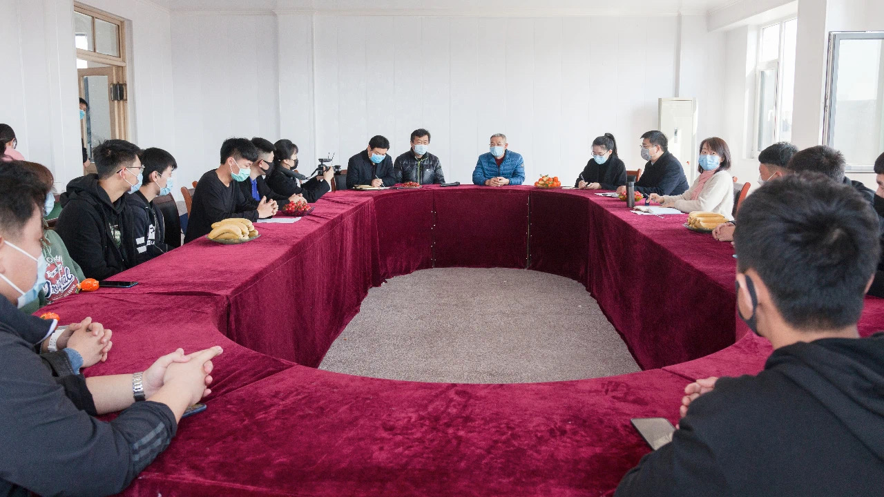 在山东省桓台水利建筑安装工程总公司会议室,山东水利技师学院党委书记于福春、副院长边敦典叮嘱参加实习的学生做好自身疫情防控工作;校方代表、参加跟岗实习的学生、企业现场签订了三方合同;企业为跟岗实习学生购置被褥等生活用品、做好食宿安排后,直接接送学生到施工现场,力争将疫情防控风险降到最低。