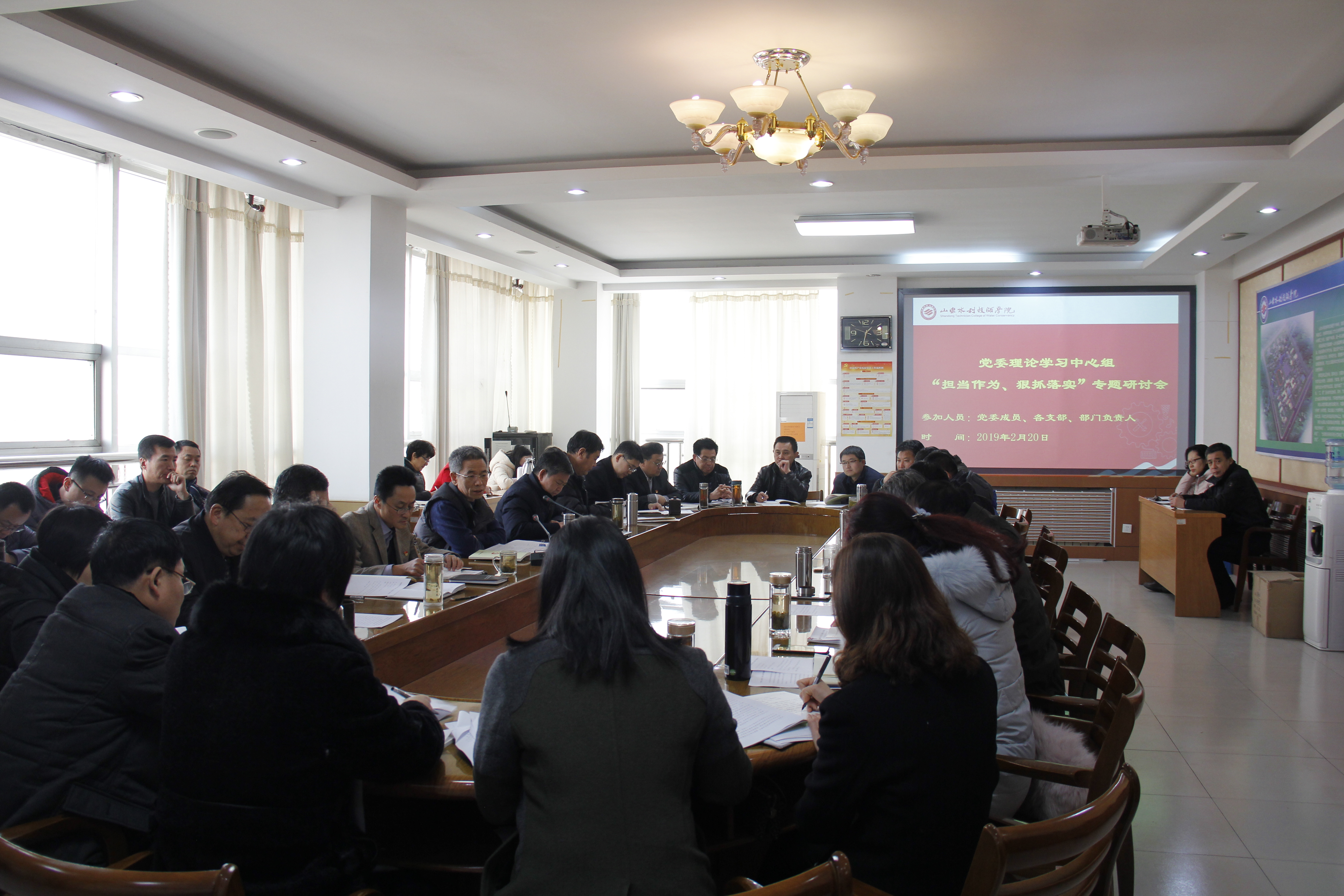 春来满目新,奋进正当时。为深入学习贯彻全省“担当作为、狠抓落实”工作动员大会精神,根据水利厅《关于贯彻落实全省“担当作为、狠抓落实”工作动员大会精神的通知》要求,学院迅速行动起来,采取个人自学、支部集中学习和党委中心组集中研讨方式,深入贯彻落实。