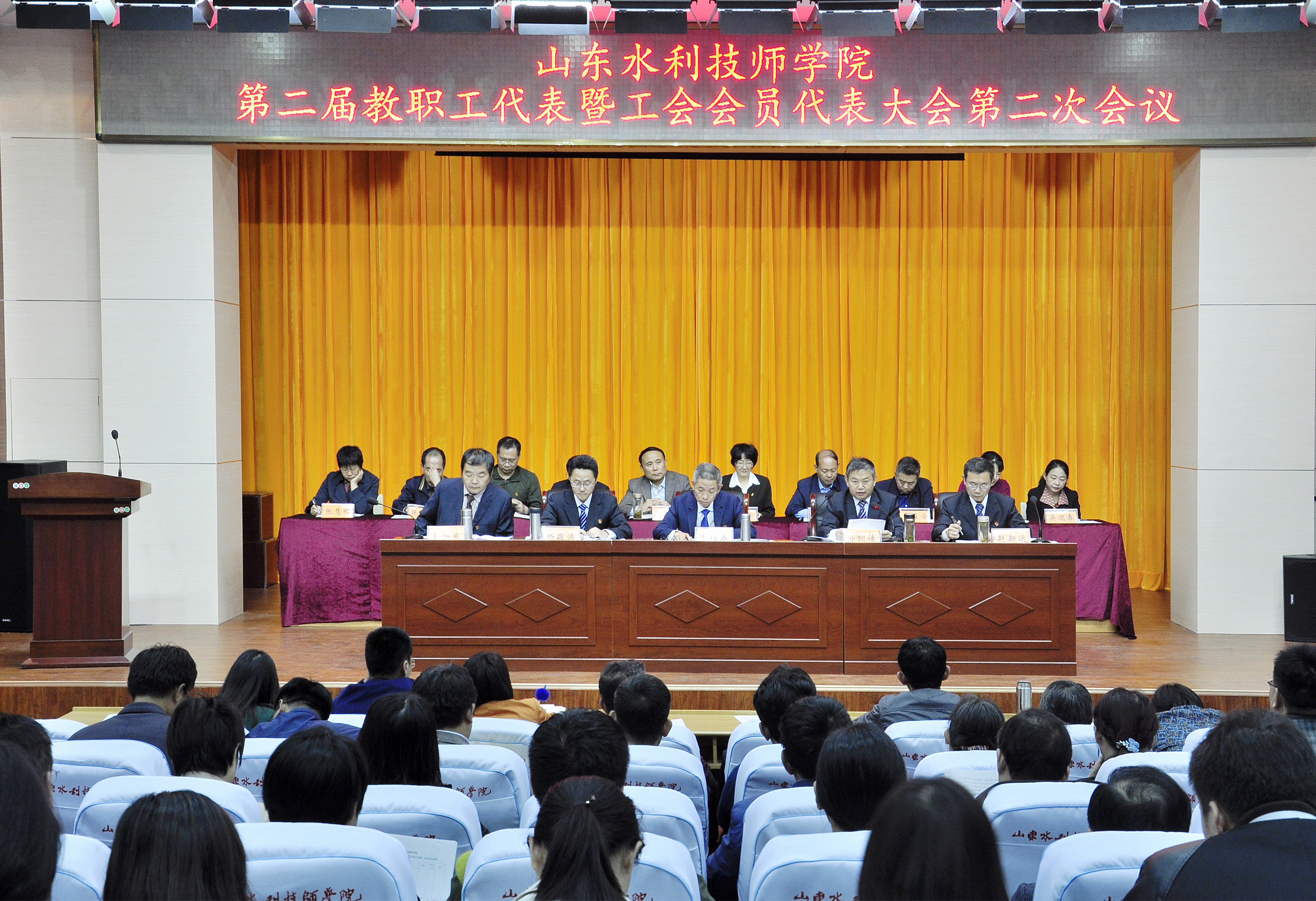 2018年10月9日,学院第二届教职工代表暨工会会员代表大会第二次会议在行政楼学术报告厅召开。学院领导于福春、孙桐传、杨敬涛、赵新运、董加良等和大会主席团成员在主席台就坐。会议由学院党委副书记杨敬涛主持。