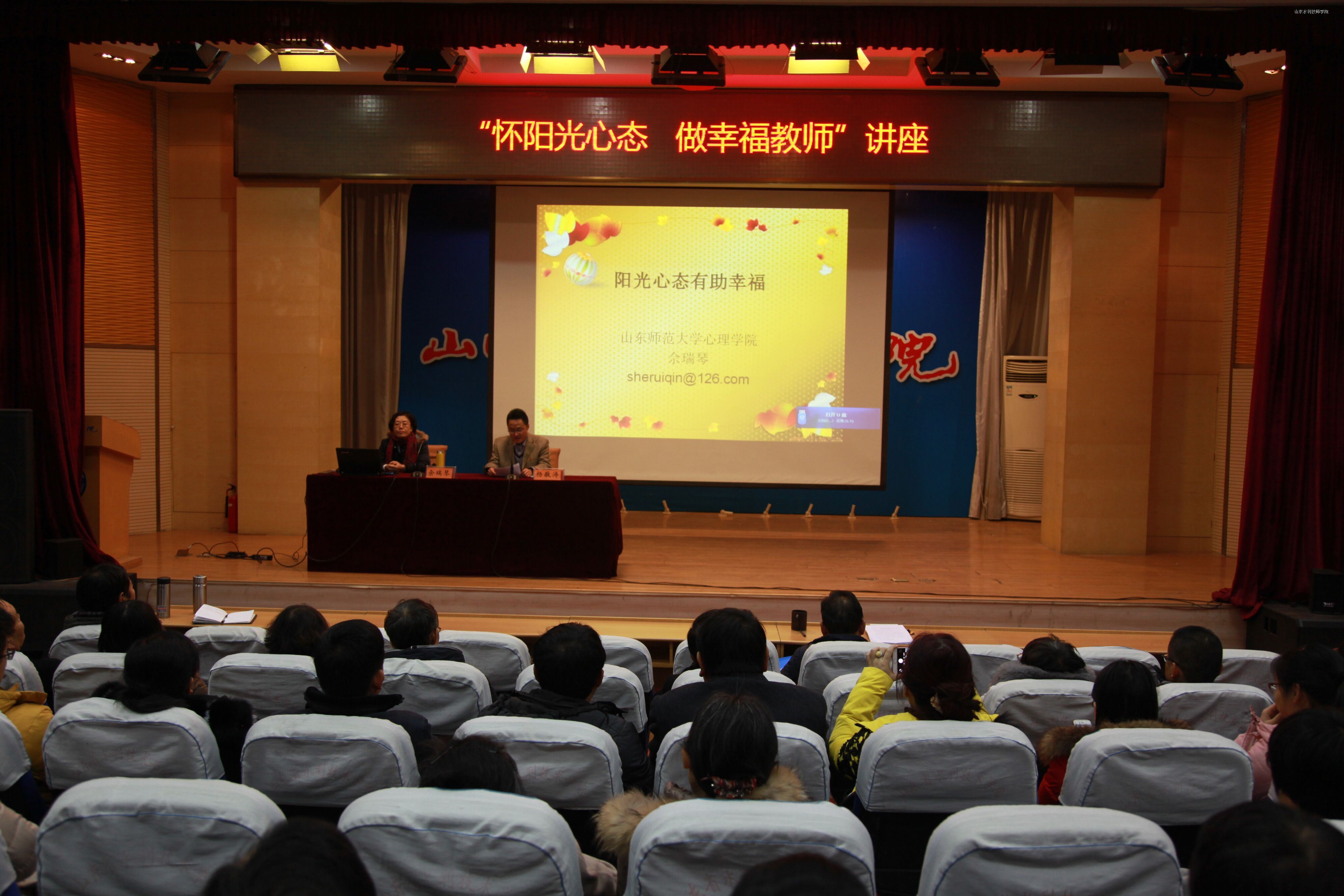 12月7日,按照学院党委《关于开展“强师德、树师风、铸师魂、促发展”师德师风建设的实施方案》安排,学院工会邀请山东师范大学佘瑞琴副教授来学院作了题为“怀阳光心态、做幸福教师”的讲座。讲座由学院党委副书记杨敬涛同志主持,全体教职工参加讲座。