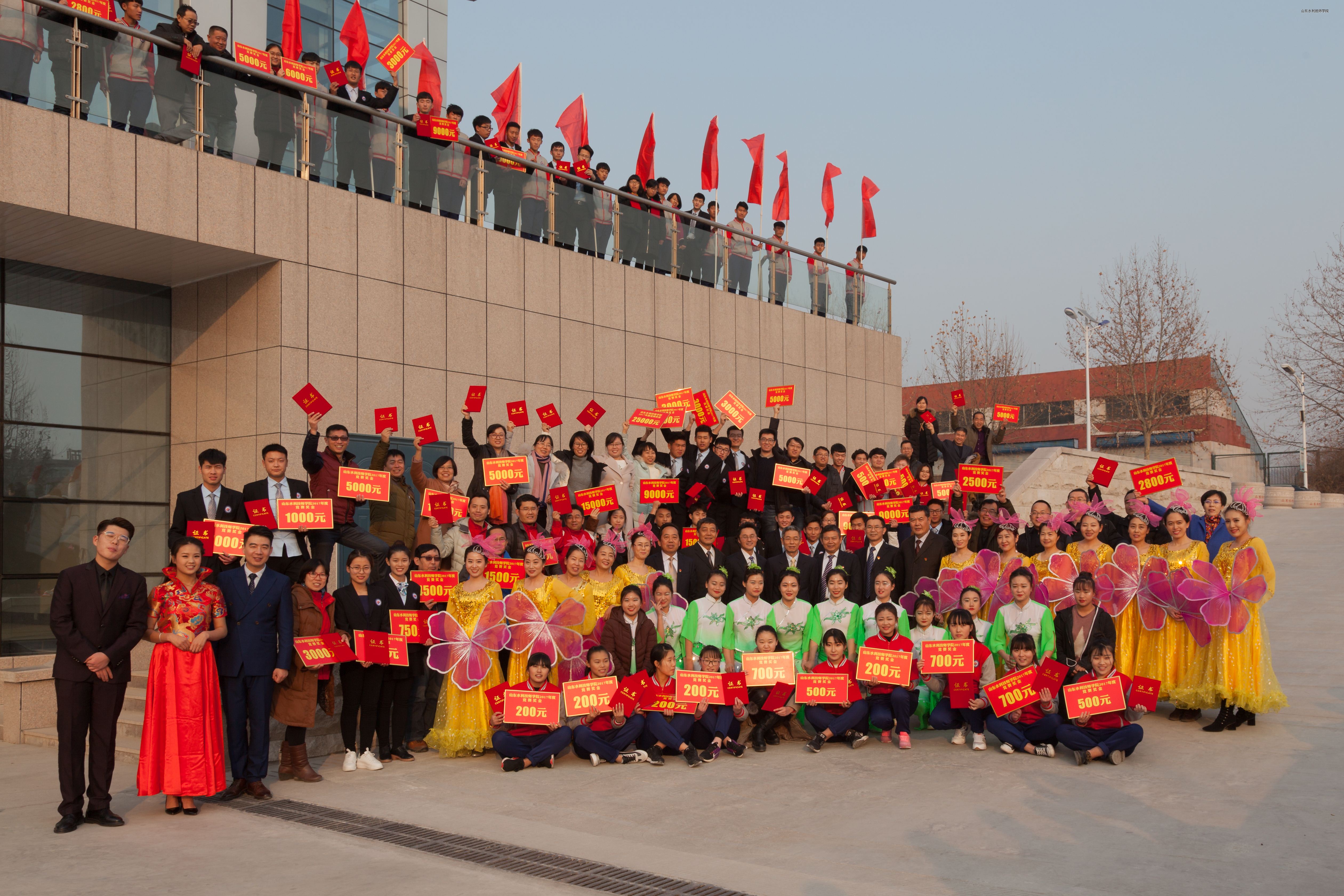 学院在2017年有63名师生参加19项省赛、国赛,在多项赛事夺得第一名,整体呈现出参赛层次高、参赛人数多、参赛密度大,成绩取得历史性突破等特点。省水利厅厅长刘中会给学院发来贺信,祝贺学院取得的优异成绩。联欢会上,学院党委副书记杨敬涛宣读了贺信。