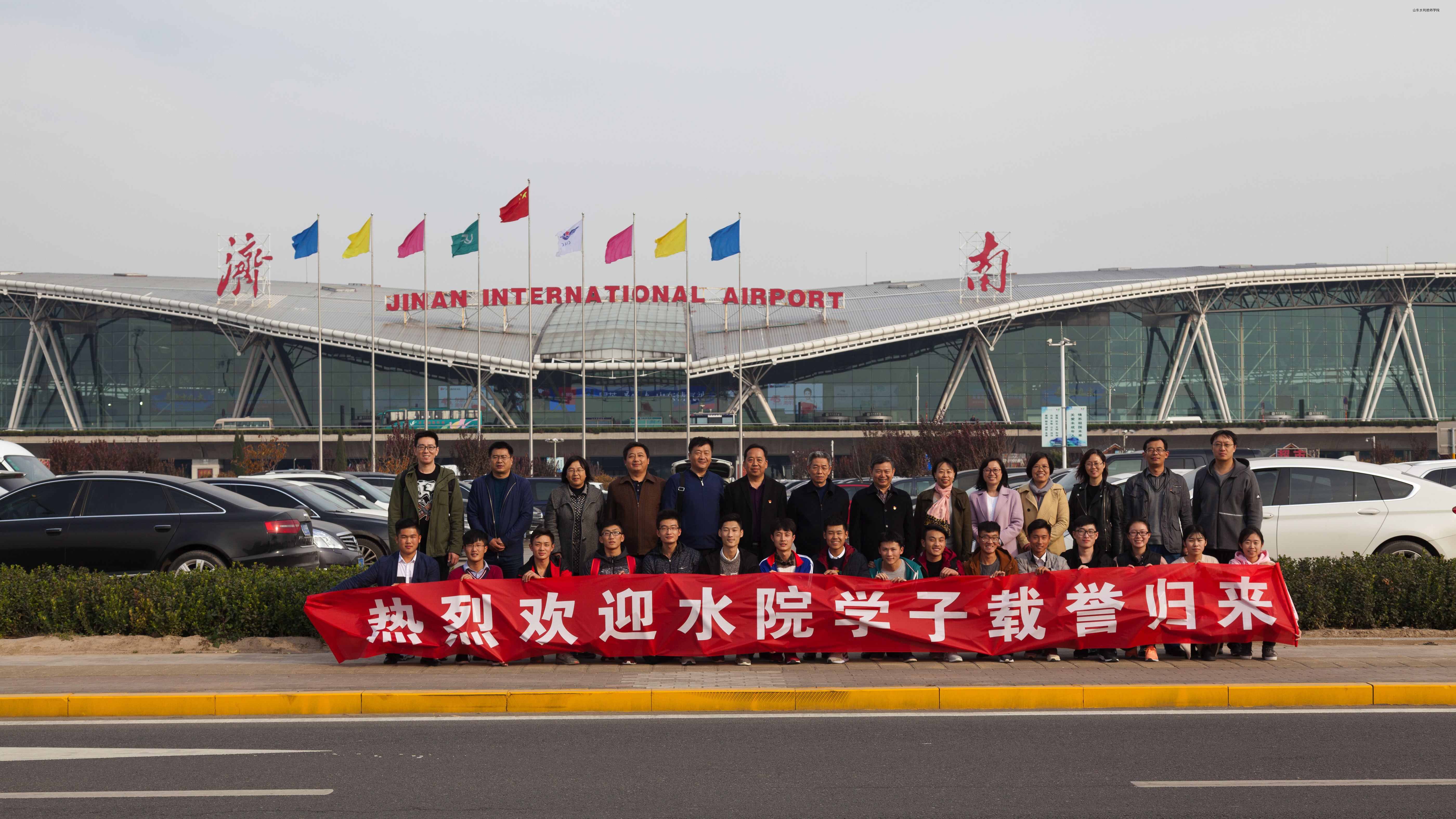 学院党委书记于福春到机场接机,欢迎学院代表队载誉归来