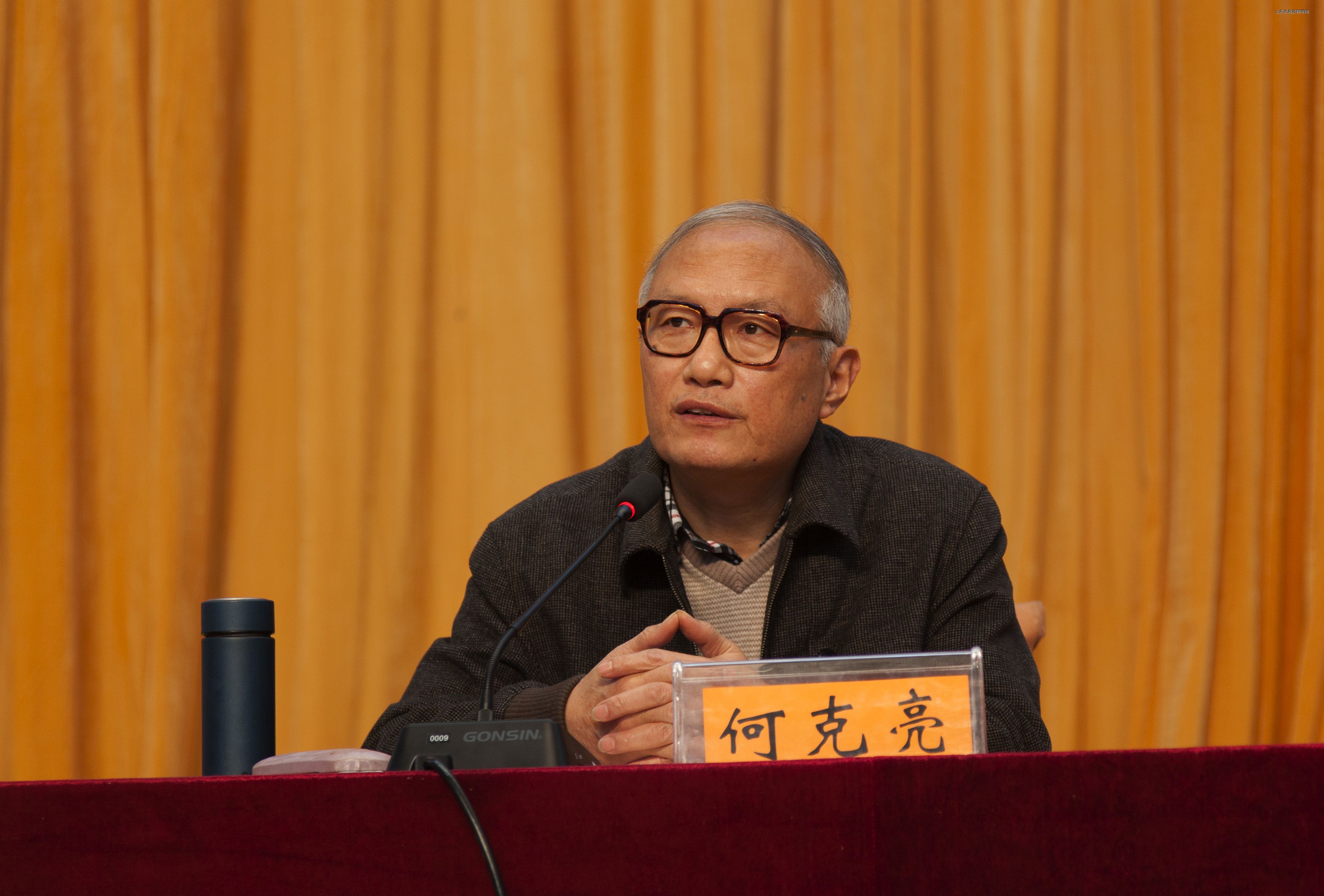 何克亮教授毕业于复旦大学政治经济学系,专修马克思主义政治经济学,从事理论教育和理论研究四十多年,是历次省委宣讲团成员,是省委组织部聘任的山东名师,中宣部首次表彰的5名全国先进宣讲个人。何教授的宣讲极具思想高度、理论深度、现实温度、指导力度,宣讲中结合大量具体事例,以生动入心的讲述,赢得广大师生多次热烈的掌声。