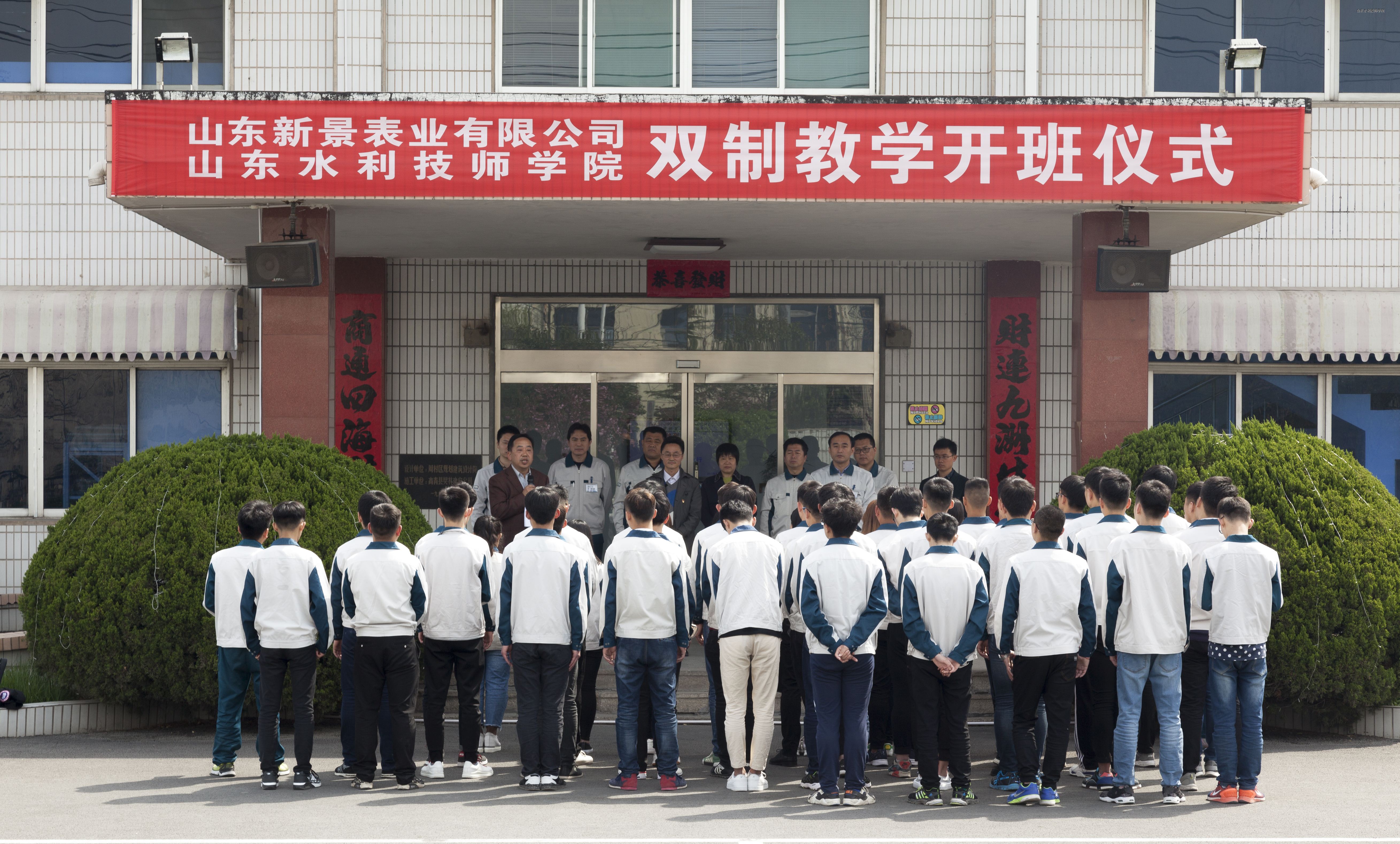 4月10日,学院与山东新景表业有限公司成立的校企双制 “新景机械装配班”在新景公司正式开班。新景公司总经理范学军,学院党委副书记杨敬涛、副院长赵建东出席开班仪式;学院机电系主任张慧卿,带队教师邹磊、鹿胜玉、赵勇,双制班学员和机电系赴企业工学一体化学习的40余名同学参加了开班仪式。