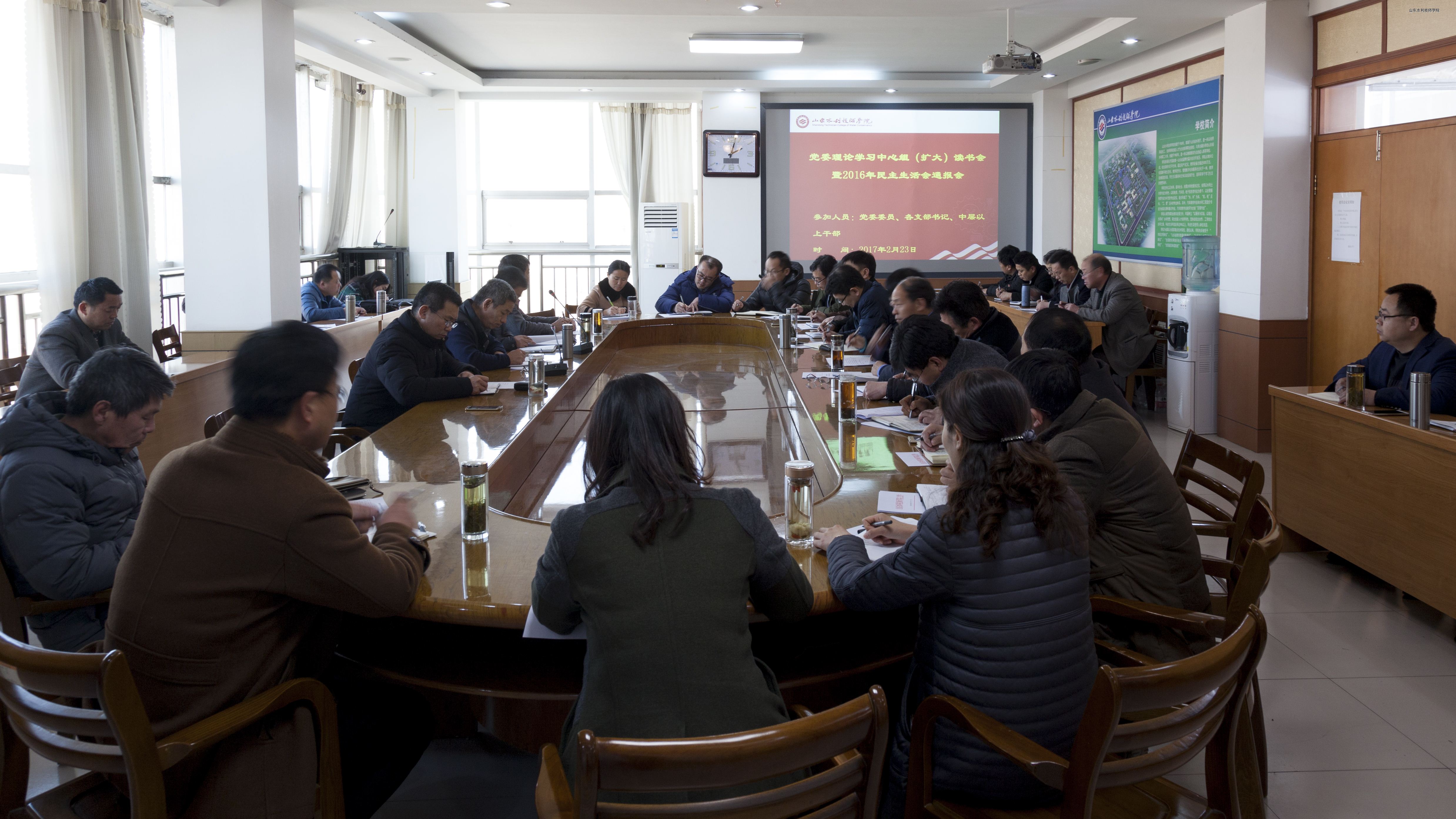 2017年2月23日,学院党委召开理论中心组(扩大)读书会暨2016年民主生活会通报会。党委书记于福春主持会议,院党委委员、各支部书记、中层以上干部参加了会议。