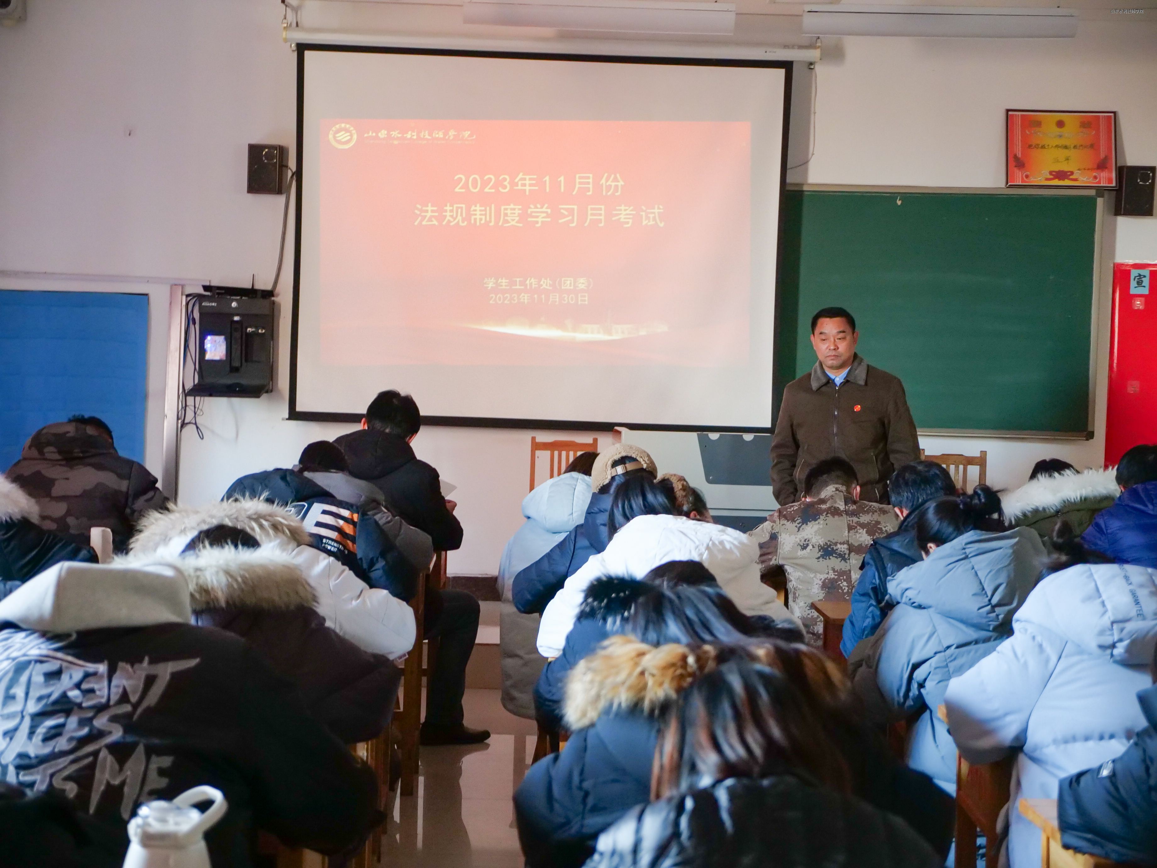 为提高学工队伍的法规素养和法纪意识,11月30,山东水利技师学院学生工作处组织全体人员开展了11月法规制度月考试。
