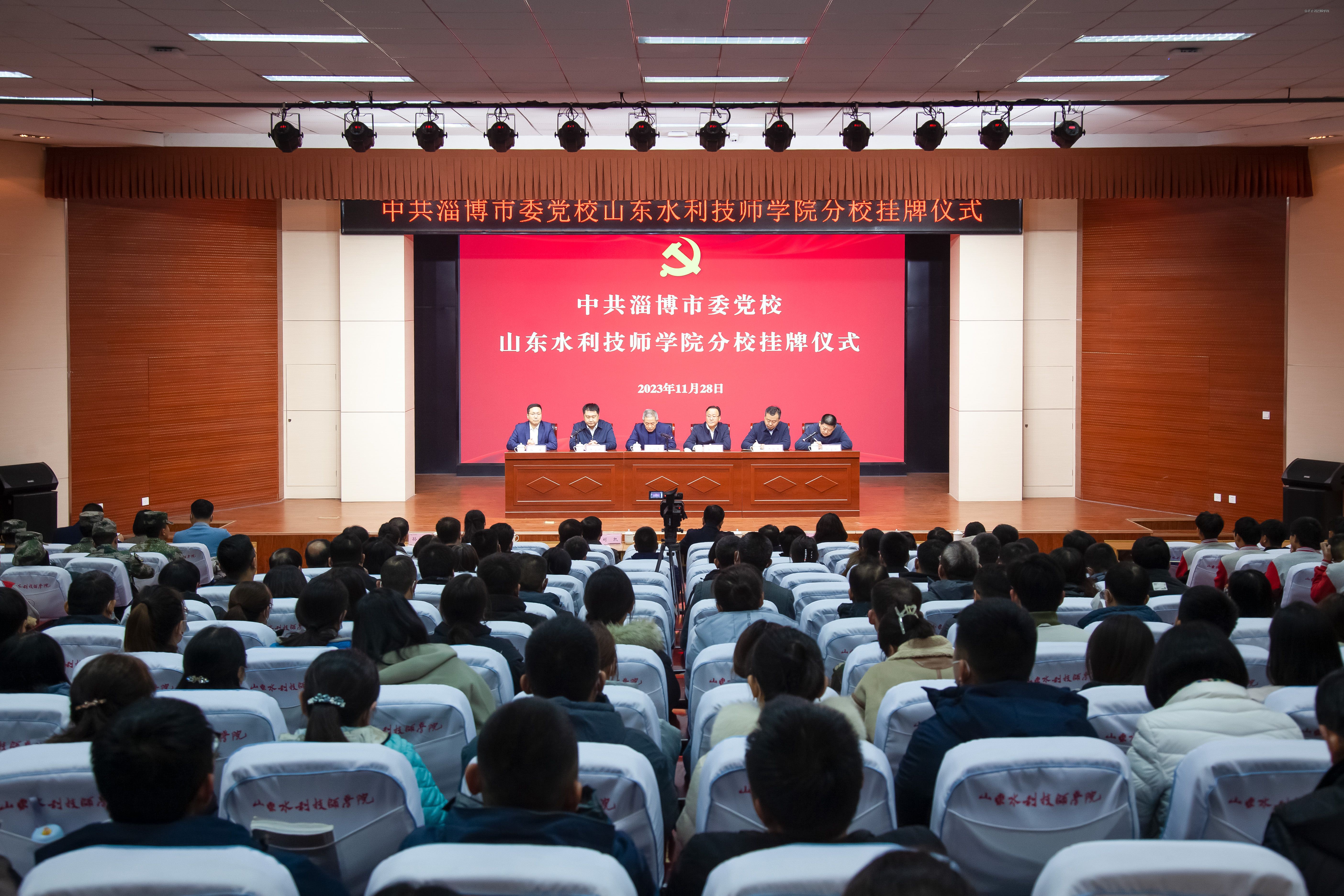 11月28日,淄博市委党校山东水利技师学院分校挂牌仪式举行。淄博市委党校分管日常工作的副校长、校务委员会主任张立国出席并讲话,学院党委书记于福春出席并致辞。学院党委副书记郑金刚主持仪式。