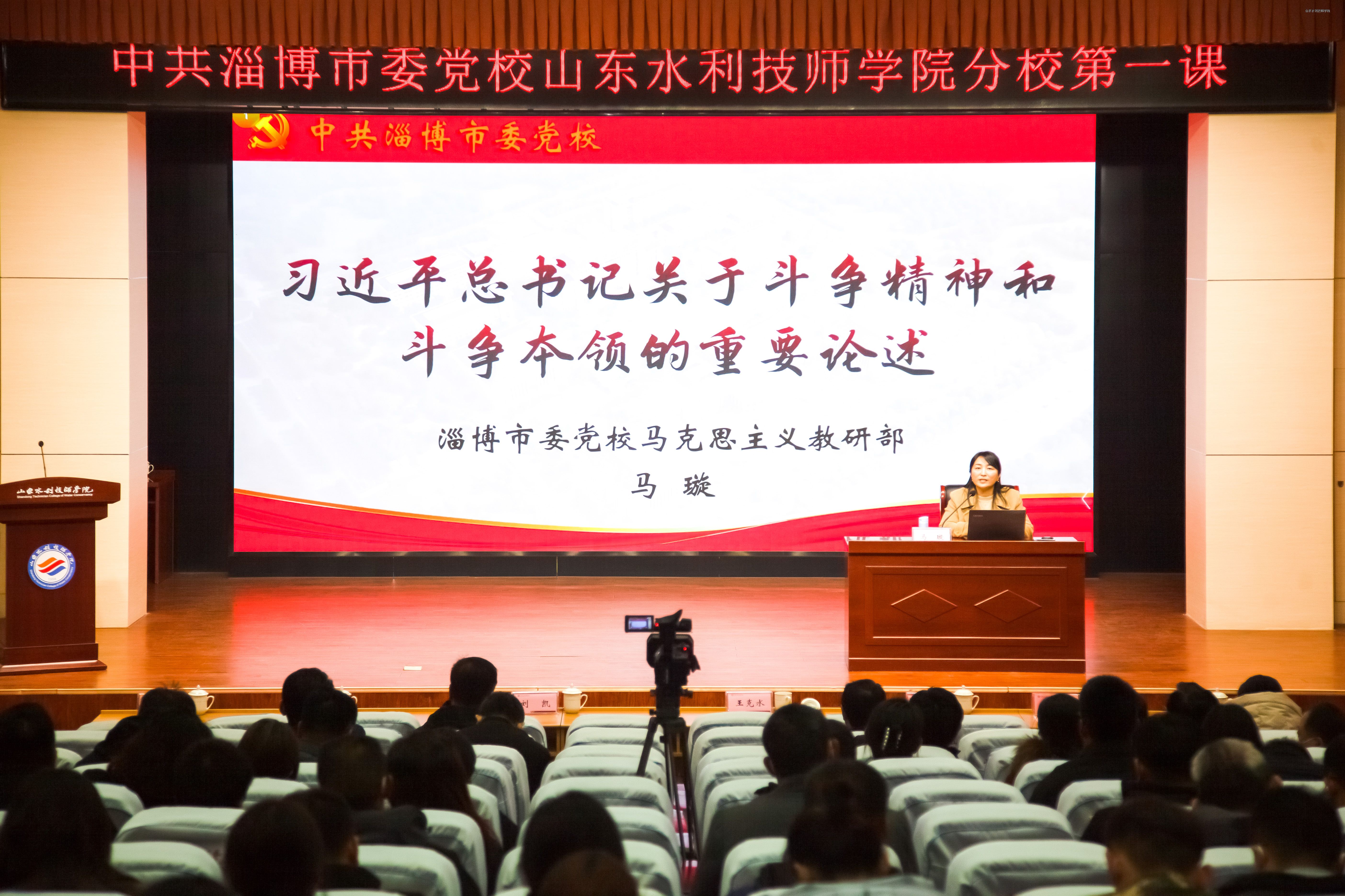 揭牌仪式后,市委党校马克思主义教研部副教授马璇以《习近平总书记关于斗争精神和斗争本领的重要论述》为题,为学院全体教职工党员和学生入党积极分子讲授了分校“第一课”。