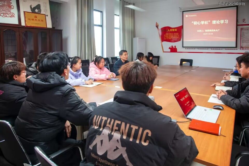 11月14日,山东水利技师学院学生思政社团“初心学社”的成员们集中在行政楼323室,聆听了党委委员孙大广讲授的一堂生动的思政课。