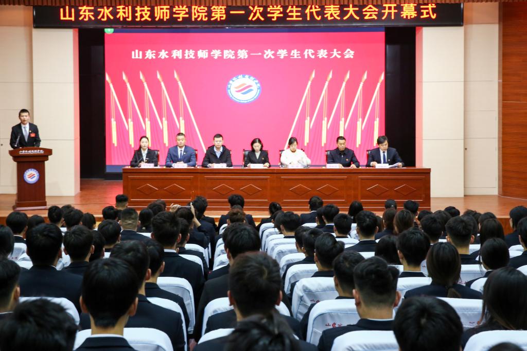 1月6日,山东水利技师学院召开第一次学生代表大会。淄博市学联秘书长、团市委学少部部长邓舒,共青团淄川区委副书记齐勇,学院党委委员、副院长穆云丽,以及淄博师专学生会代表,学院各系部团总支书记、辅导员代表和105名学生代表出席、参加开幕式。
