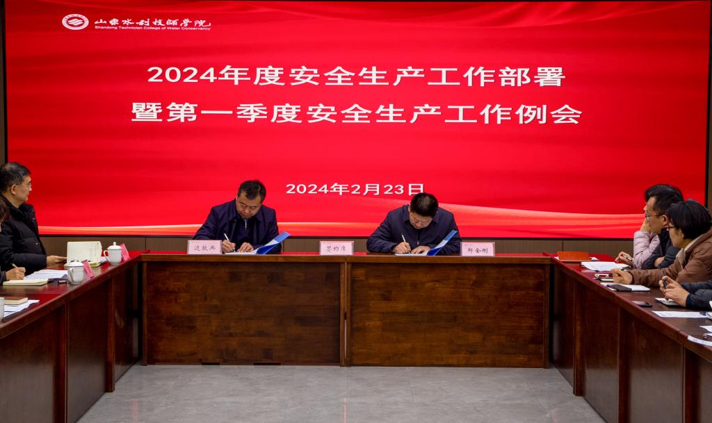 会上,边敦典与其他党委成员签订了《2024年度安全生产工作目标责任书》,王金厢传达学习了省水利厅《关于扎实开展开工“第一课”活动加强复工复产安全防范工作的通知》并通报了学院《2024年度安全教育培训与应急演练计划》。