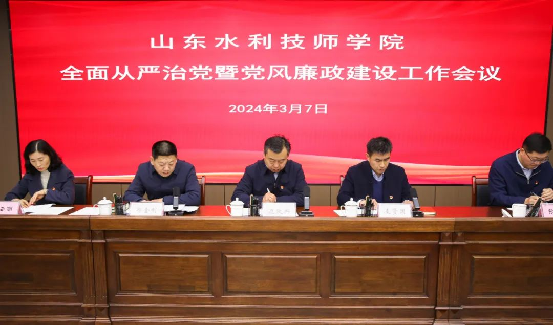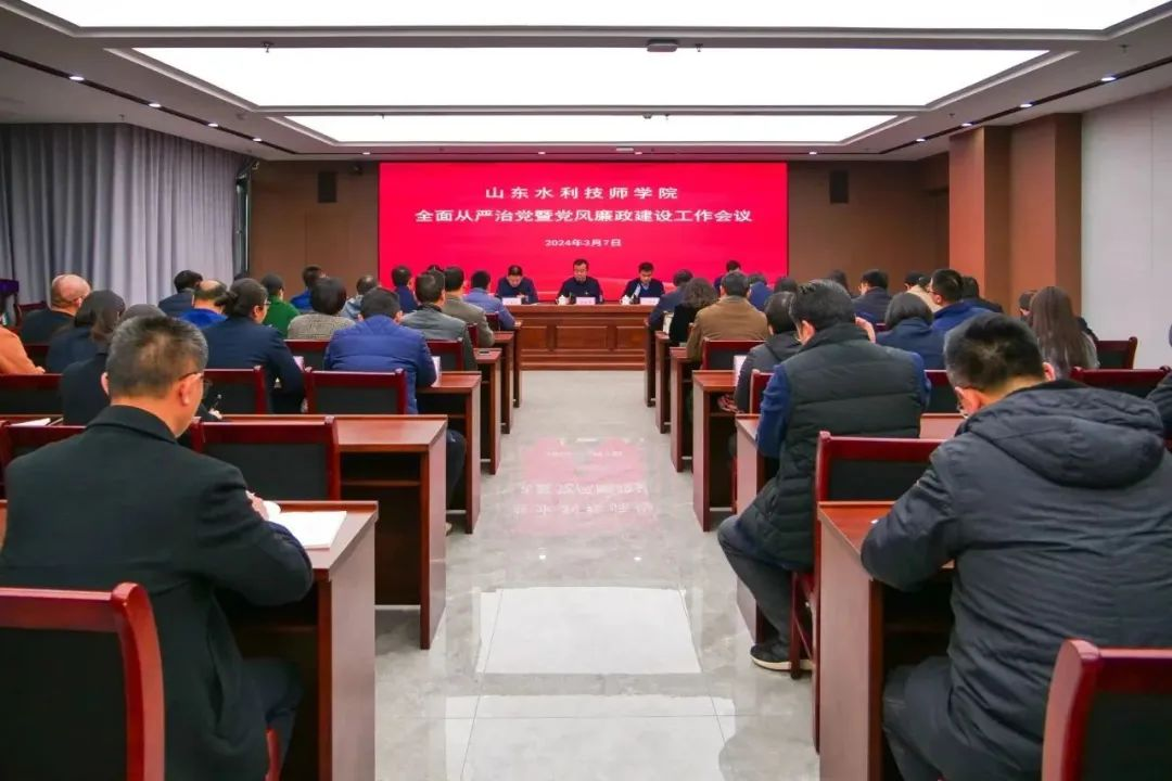 3月7日,山东水利技师学院召开2024年全面从严治党暨党风廉政建设工作会议,深入学习贯彻习近平总书记关于党的自我革命的重要思想,全面贯彻落实二十届中央纪委三次全会、十二届省纪委三次全会、2024年全省水利系统全面从严治党暨党风廉政建设工作会议精神,总结学院全面从严治党工作,分析当前形势,部署2024年重点任务。