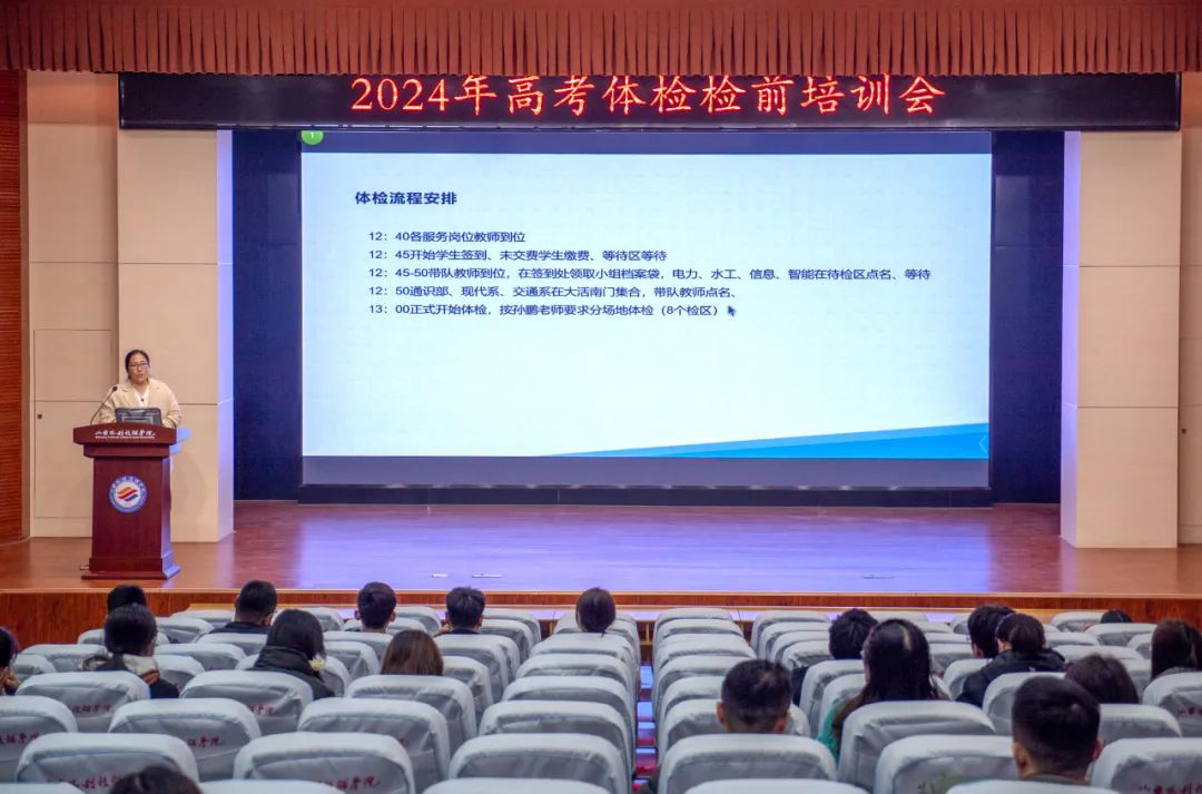 精心筹备迎体检。淄川区招考办、淄川区中医院来我院实地考察体检环境。学院召开了高考体检工作专题会议,制定体检工作方案,明确人员分工,发布高考体检考生须知,合理布置体检场地,积极筹备,认真做好师生培训,全面保障高考体检工作顺利有序进行,为考生营造健康、安全的体检环境。