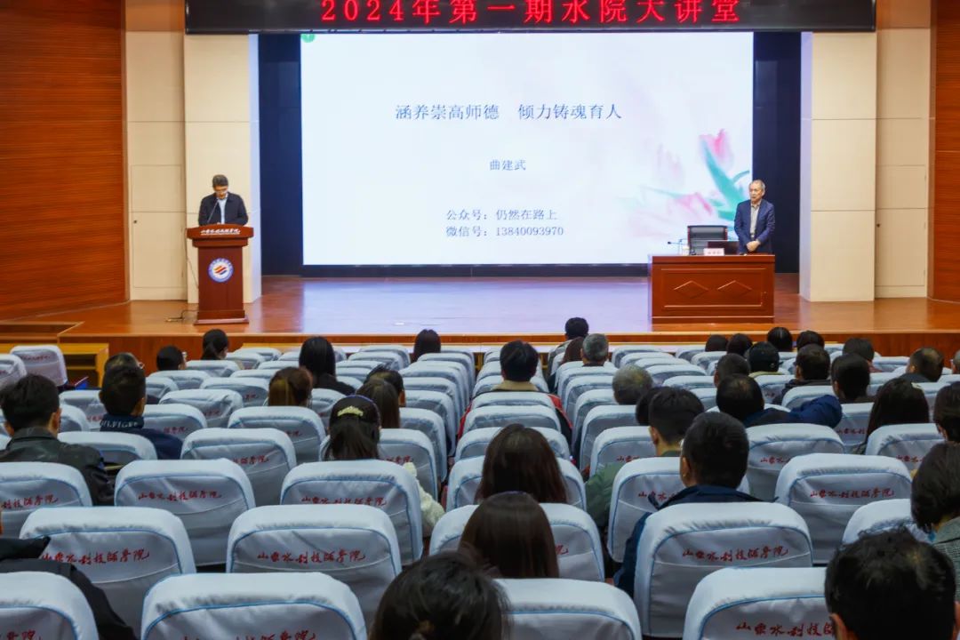 近日,山东水利技师学院邀请大连海事大学马克思主义学院二级教授、博士生导师曲建武到校,以《涵养崇高师德 倾力铸魂育人》为题,为全体教职工作师德师风专题报告。学院党委委员孙大广主持报告会。