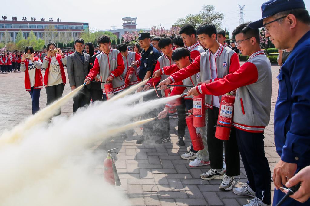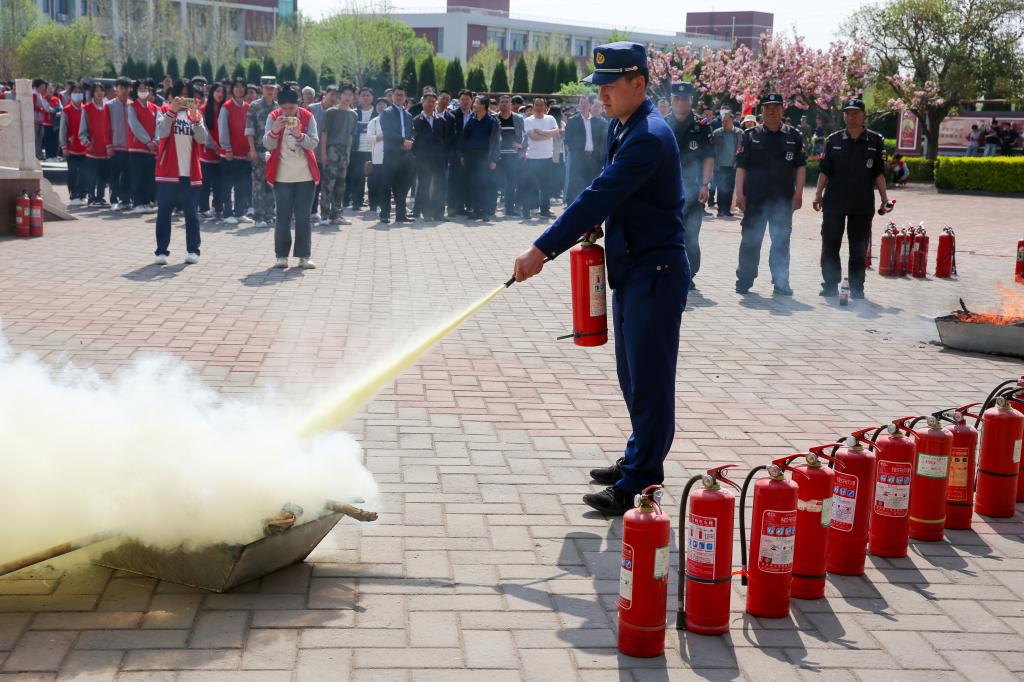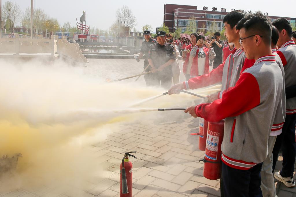 随着学院院长、演练总指挥边敦典一声令下,演练拉开序幕。演练模拟学校人员密集场所发生火灾的情形。过程中,参训师生就报警、疏散、逃生、救助等相关环节进行了演练。尤其是工作人员组织师生进行灭火器扑救初期火灾的实战演练,让师生亲身体验了灭火过程,实际操作了灭火器材,强化了他们的逃生自救能力。
