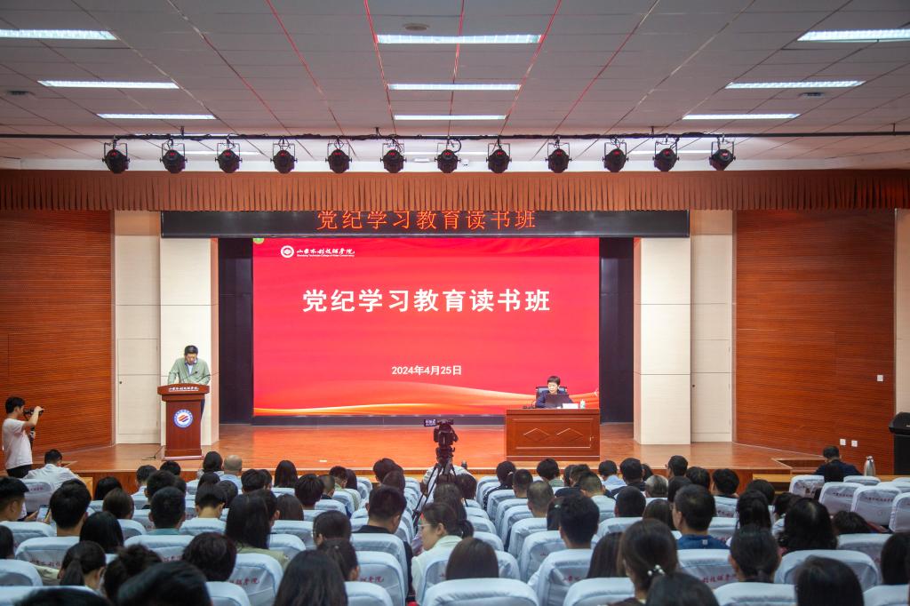 4月25日,山东水利技师学院举办党纪学习教育读书班,深入学习贯彻习近平总书记关于党纪学习教育的重要讲话、重要指示精神,认真学习新修订的《中国共产党纪律处分条例》。