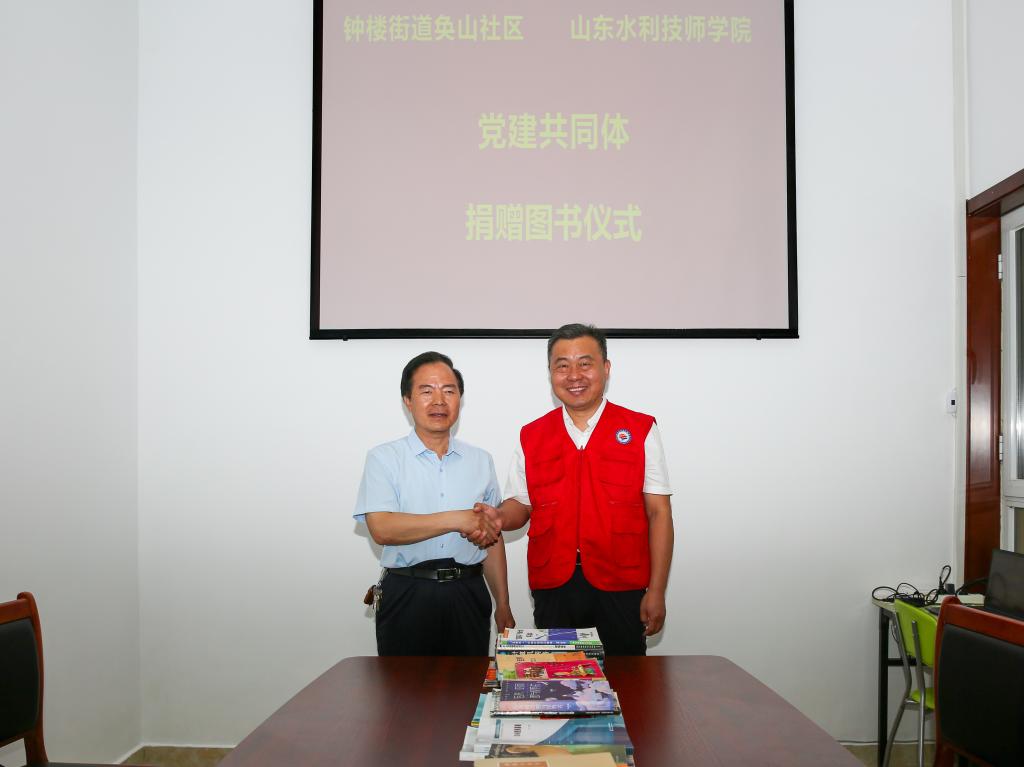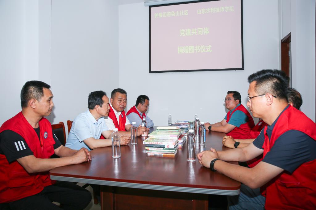 5月21日,山东水利技师学院政务党支部联合水利工程系党支部共计30余名党员,到驻地奂山社区开展党员社区双报到暨志愿服务活动。学院党委副书记、院长边敦典带队参加活动,并与社区工作人员开展座谈,向社区书屋捐赠了图书及分类垃圾桶。