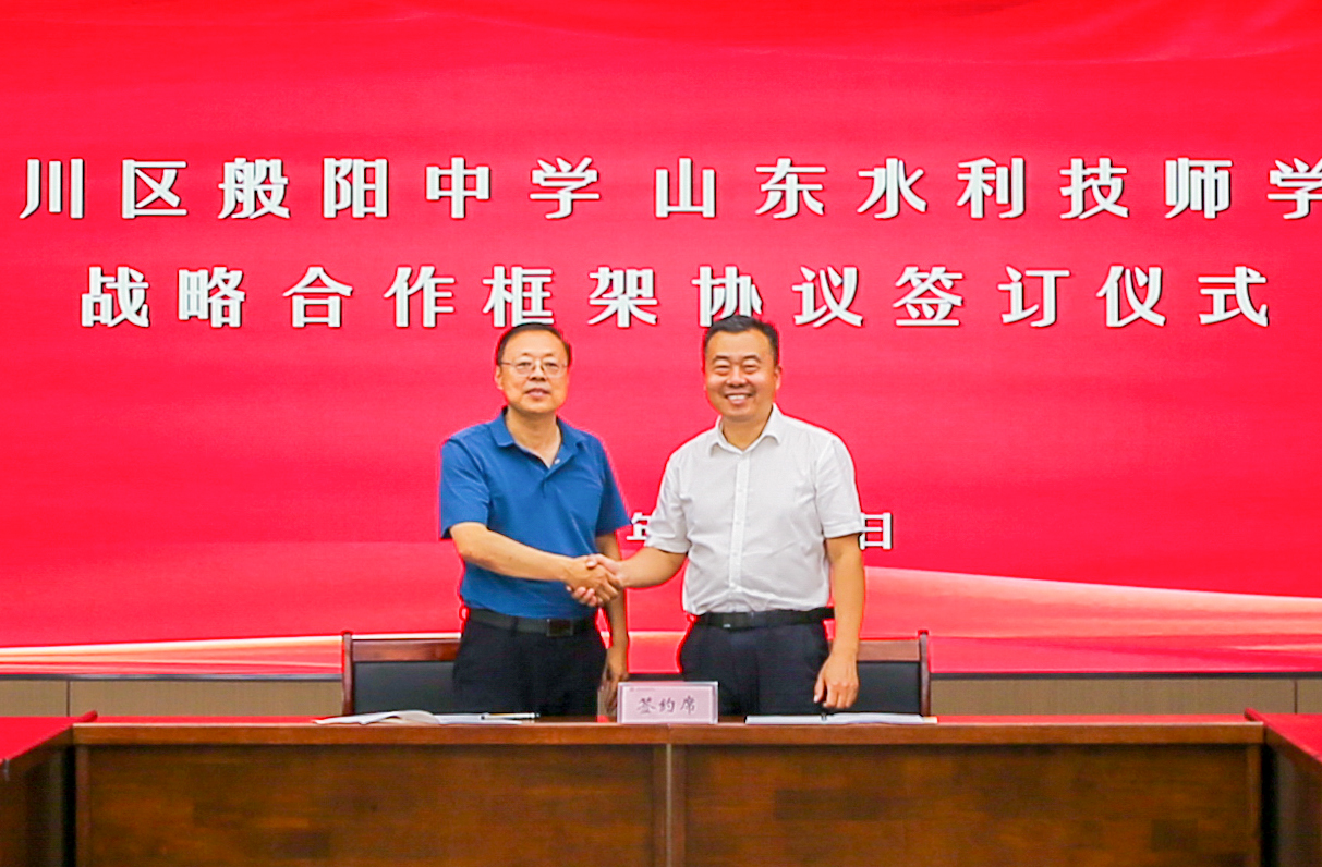 5月23日,淄川区般阳中学与山东水利技师学院战略合作协议签约仪式,在山东水利技师学院举行。淄川区般阳中学党委副书记、校长张云鼎,山东水利技师学院党委副书记、院长边敦典出席仪式,双方有关部门主要负责人参加仪式。