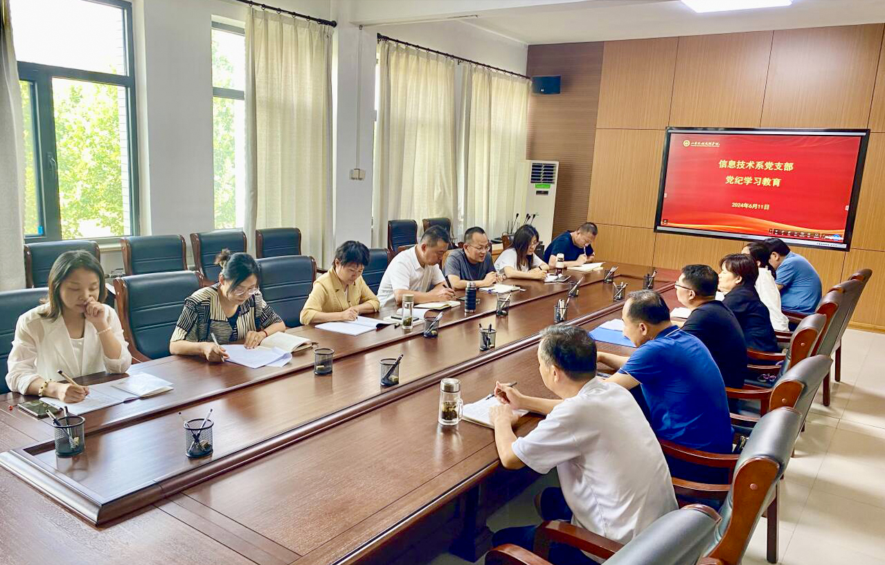 6月11日,学院信息技术系党支部召开党纪学习教育会暨工学一体化教改阶段性总结会。学院党委副书记、院长边敦典,党委委员、副院长程霞出席会议。