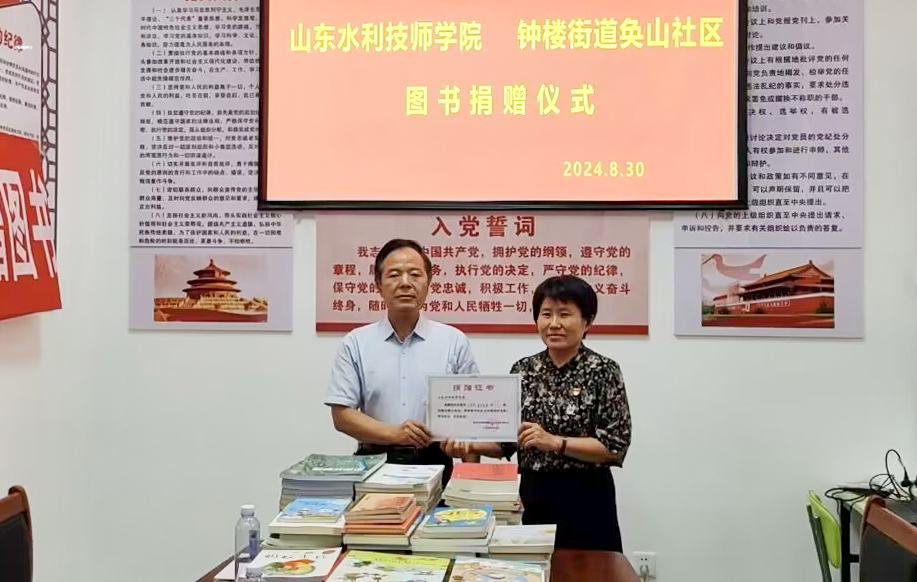 捐赠仪式前,奂山社区党支部书记、居委会主任李同斌围绕为社会居民服务,为百姓解难题办实事,介绍了建设美丽、和谐、幸福、宜居省级智慧社区落实的举措与成效。对学院多年来到社区送文化节目、开展技术服务等多样志愿服务活动表示感谢。