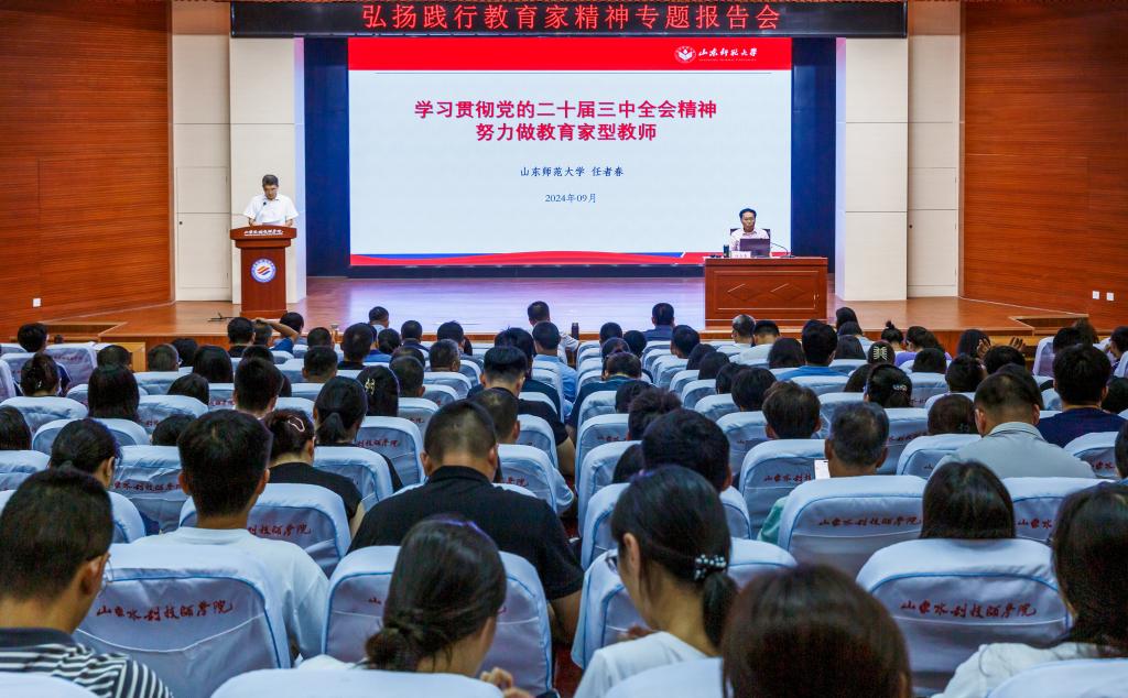 又讯:为营造浓厚的尊师重教氛围,教师节前夕,学院邀请山东师范大学马克思主义学院教授、博士生导师任者春到校,围绕学习贯彻党的二十届三中全会精神,努力做教育家型教师进行宣讲。学院微信公众号发布“烛照·芳华”专题系列报道,通过倾听老中青优秀教师耕耘教育的生动实践,教育引导广大教职工向着成为勤学、善学、乐学的经师,敬业、精业、乐业的匠师,求真、向善、尚美的人师不懈奋进,努力为加快建设教育强国贡献力量。