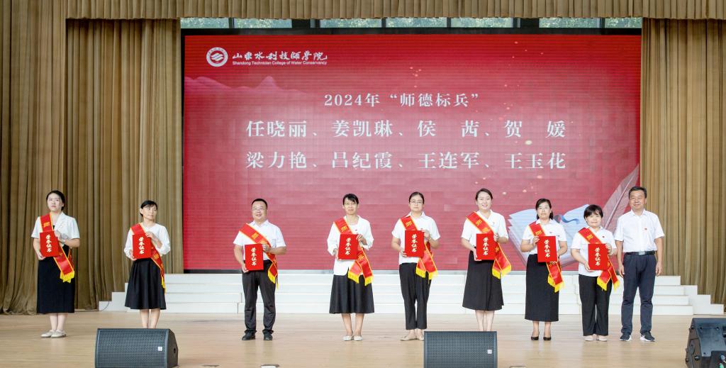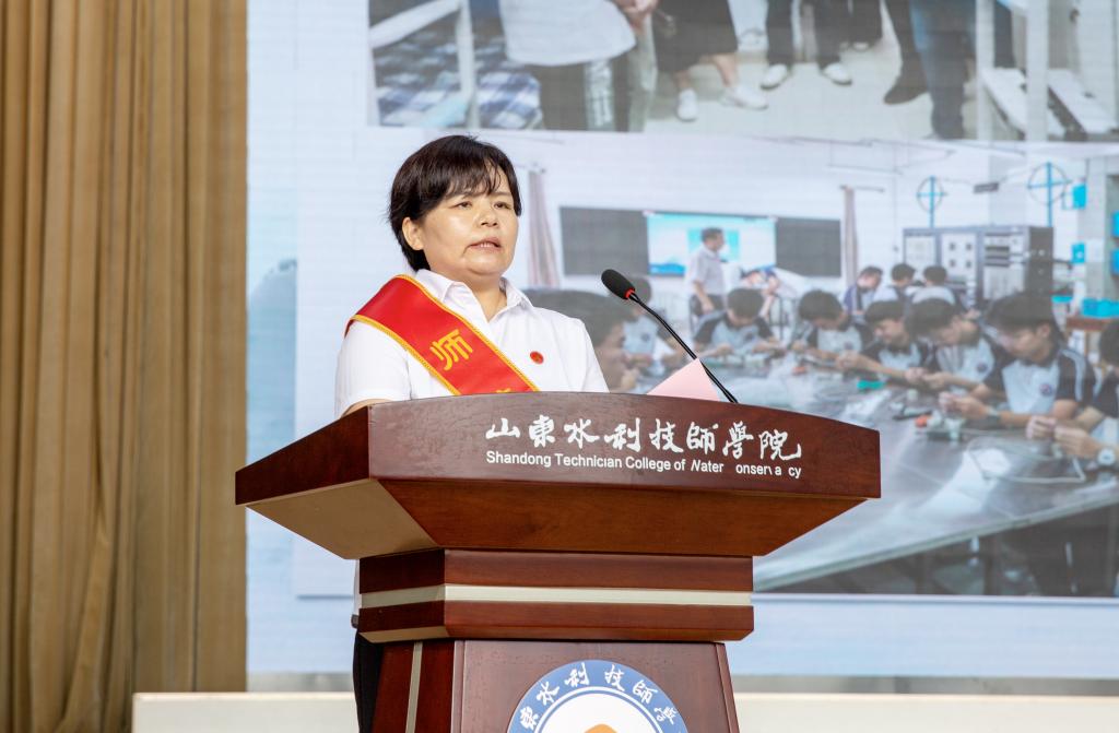 会上,通报表彰了22名受到省人社厅、淄博市教育工委表扬的优秀教师、教育工作者、班级管理突出个人和学院师德标兵。李志敏、鹿胜玉、任晓丽、杨敏等4位教师和学生代表分别发言。