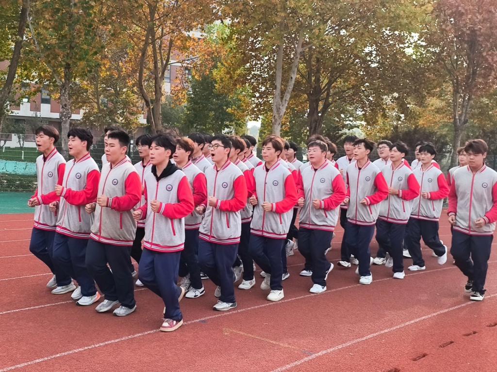 少年自有凌云志,不待扬鞭自奋蹄。随着跑操音乐的响起,同学们迅速进入状态,迈开步伐,每个班级都形成了一个整齐的流动方阵,每名同学脸上均洋溢着青春的活力、眼中闪烁着坚定的光芒。