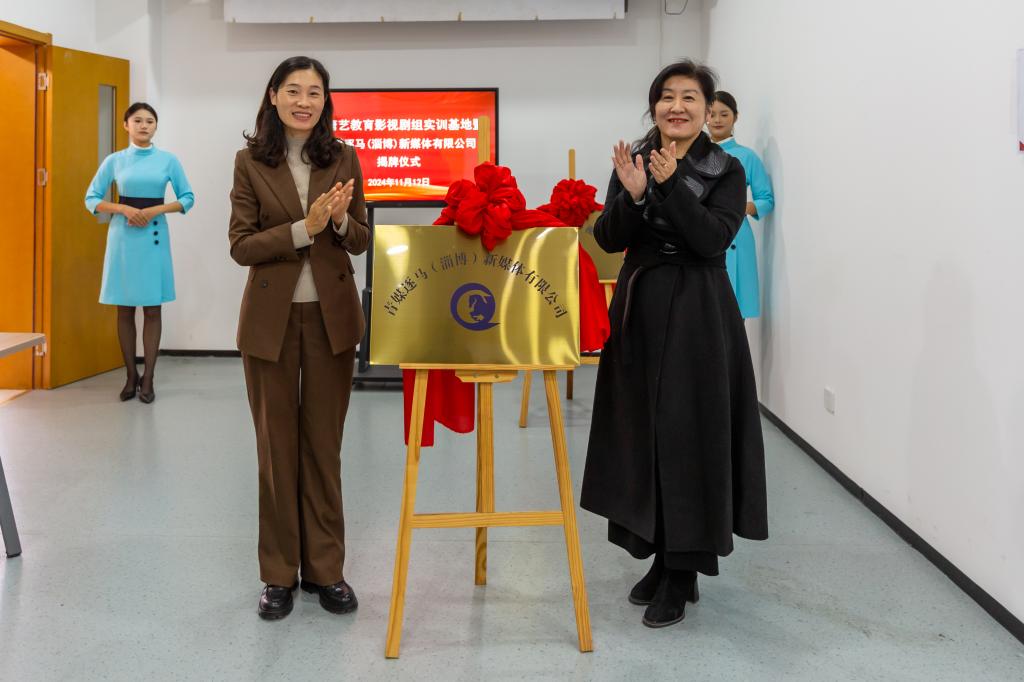 11月12日,学院举行新唐艺教育影视剧组实训基地暨青媒逐马(淄博)新媒体有限公司揭牌仪式。新唐艺教育咨询影视公司董事长王荣波,学院党委副书记郑金刚、副院长穆云丽出席仪式。