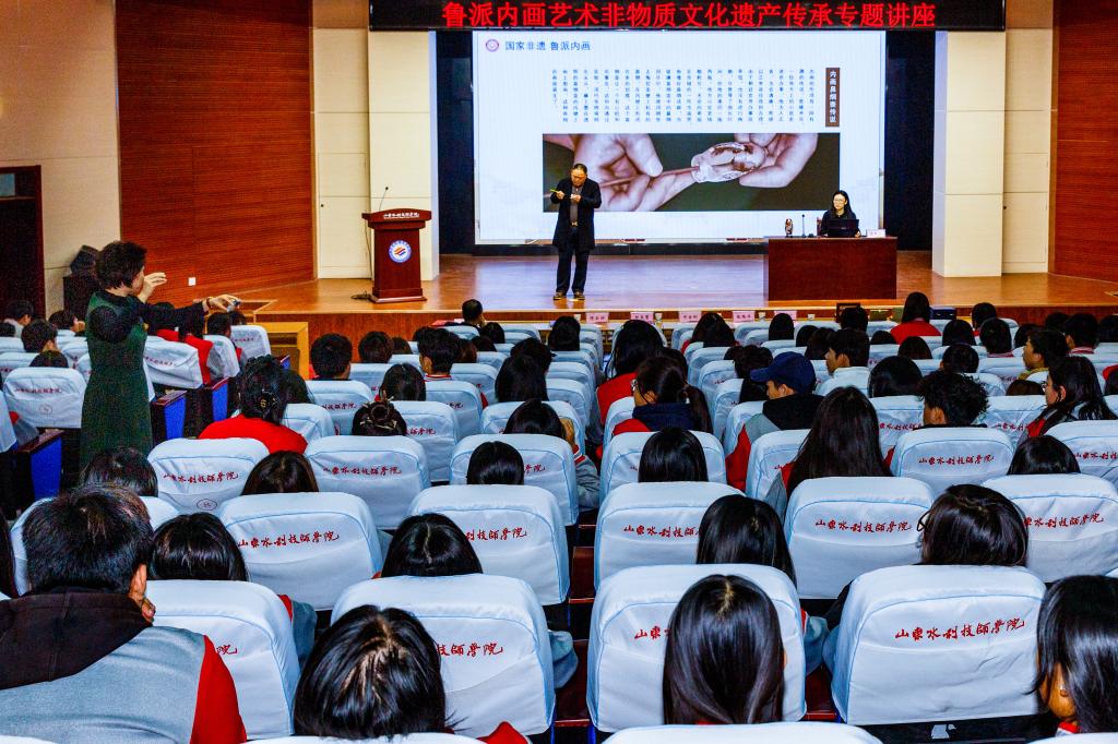 讲座中,张路华、郑玉慧以浅显易懂的语言,系统梳理了鲁派内画的历史起源与发展脉络,详细介绍并展示了鲁派内画独特的绘画技巧、艺术风格及其所承载的文化意义。他们勉励学生,艺术追求之路道阻且长,唯有持之以恒、守正创新,方能实现自我价值与理想信念的双重升华。