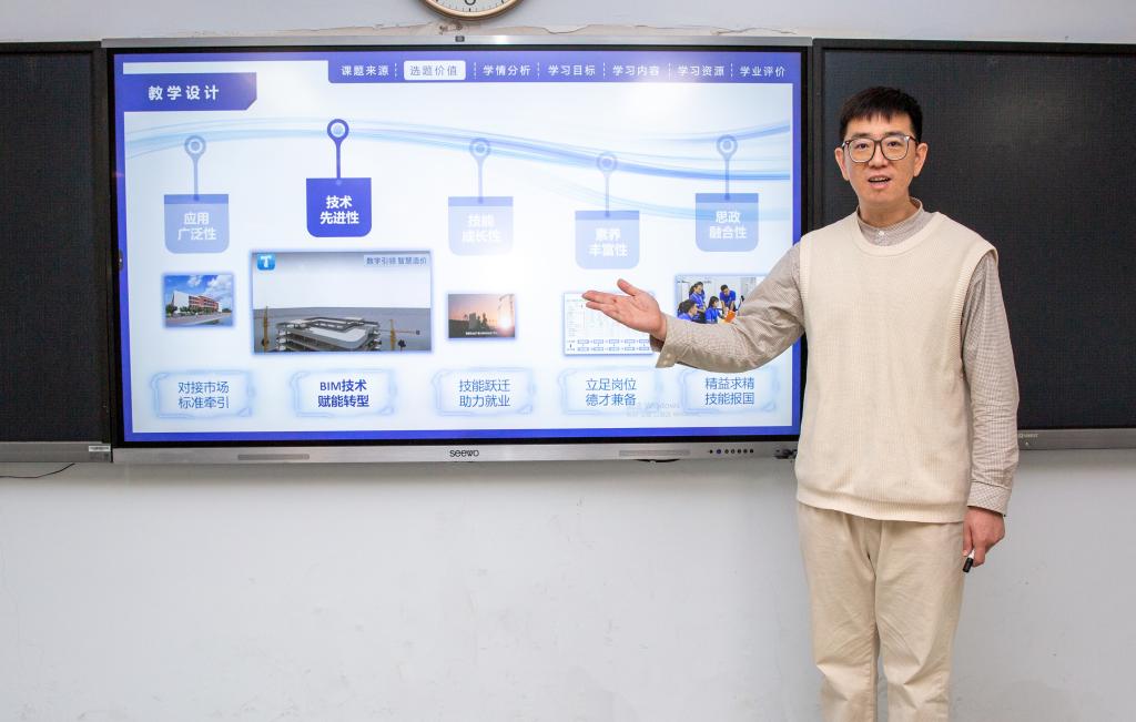 “成了!”“值了!”成绩传来,比赛选手与指导教师脸上洋溢着笑容,眼角却悄悄润湿。为了提升成绩,赵建翔和王媛精研竞赛要求、汲取优秀成果,指导教师张慧卿发挥历届大赛评委的优势,与他们一起字斟句酌设计文本、帧帧相适制作课件、精雕细琢说课文稿、反复磨合说课与展示、环环相扣准备答辩……每一关每一步,都扎扎实实付出了艰辛的努力。最终,两位选手凭借创新的文本设计、流畅的说课、沉稳的展示、自信的答辩获得佳绩。