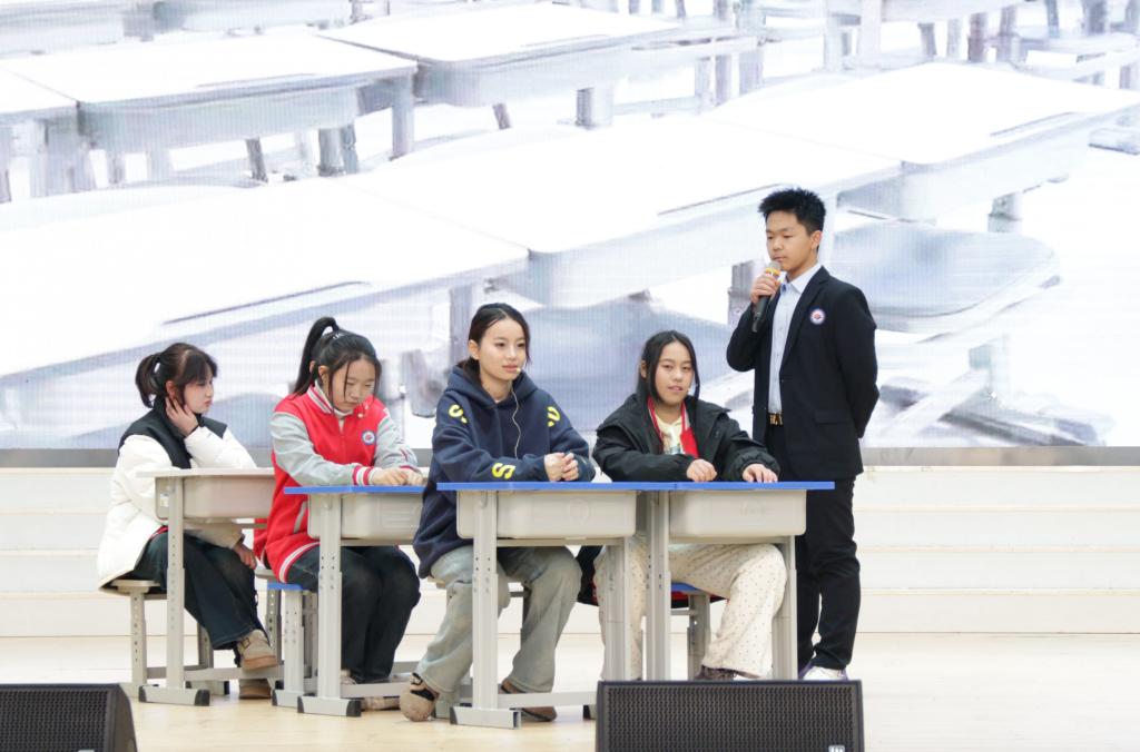 决赛现场,来自7个教学系部的7支参赛队伍,以情景剧的形式,将预防校园霸凌、反诈宣传等贴近民生热点的主题内容一一生动呈现,赢得评委的充分肯定,给予“选题丰富、形式多样、表现力强,展现出同学们对社会问题的敏锐洞察和对法治建设的深度思考”的高度评价。