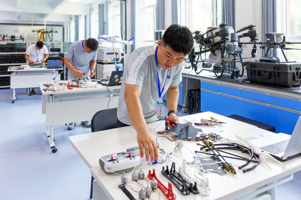 本次竞赛以高度贴近实际工作场景为特色,设置了覆盖无人机装调全过程的考核内容。从无人机硬件的精密组装,到软件系统的精准调试,再到复杂故障的快速排查与修复,直至无人机试飞性能验证,每一个环节都严格对标行业标准,全面检验选手的理论知识储备、实操技术水平和临场问题解决能力,为选拔出真正能在无人机装调领域独当一面的高素质技能人才奠定基础。