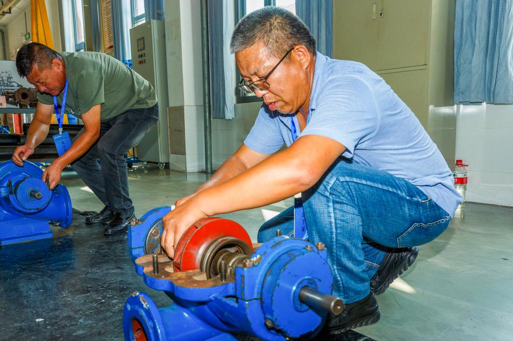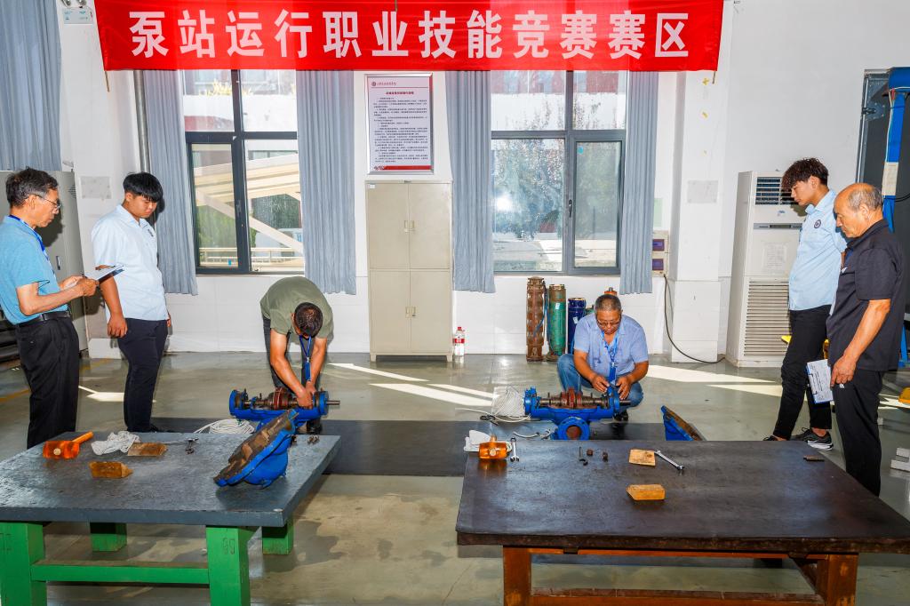 本次竞赛由省人社厅、省总工会、省水利厅主办。来自全省16市及省水网运行调度中心、南水北调干线公司的105名选手参赛。竞赛历时两天,包括理论考试和实操考试两部分。渠道维护工设土密度检测、断面测绘、闸门制动器调整3个实操赛项;灌排泵站运行工设电气设备接线、离心泵拆装、离心泵机组同轴度调整3个实操赛项。