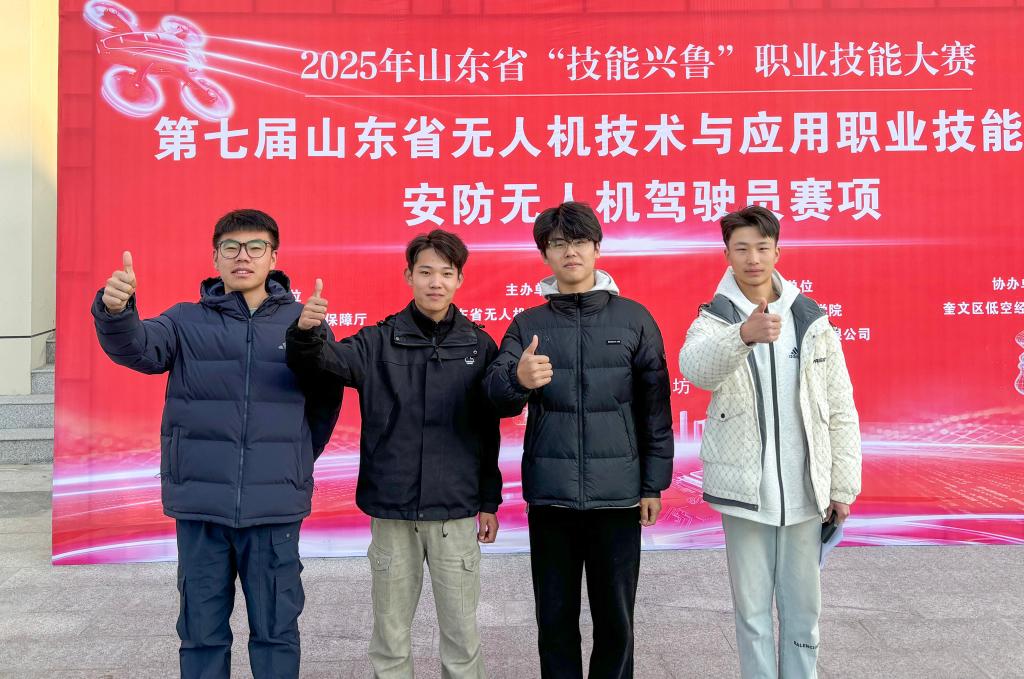 近日,在山东省“技能兴鲁”职业技能大赛第七届山东省无人机技术与应用职业技能竞赛中,学院师生凭借扎实的专业功底和娴熟的操作技能,一举斩获3个一等奖、4个二等奖和4个三等奖。