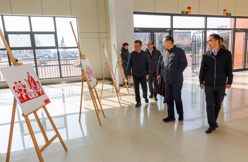 仪式结束后,万斌、边敦典陪同刘皓一行参观了学院孔子学堂主堂、新时代雷锋精神文化博物馆,以及各系部教学实训场所,并观看了学生创制的孔子形象剪纸作品展。