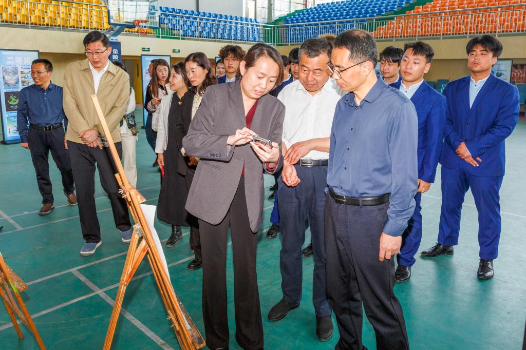 作品前,学院领导逐一赏评,听取创意解读,与创作师生亲切交流,对赛事成效与作品质量给予充分肯定。