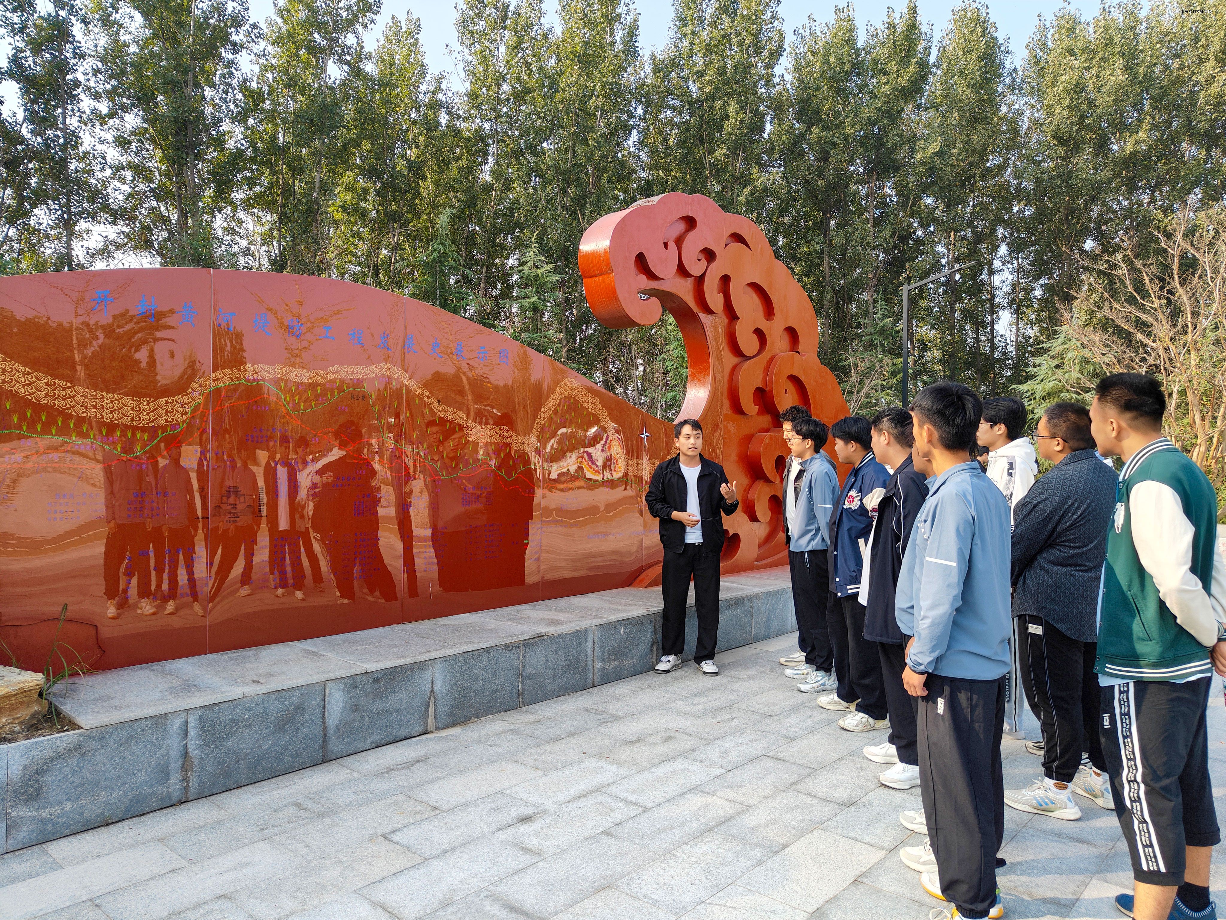 在林则徐治河文化广场,胡玉立老师给同学们讲解了开封黄河堤防工程发展史,讲述了林则徐的治水故事,引导同学们学习他“苟利国家生死以,岂因祸福避趋之”的高尚民族情怀。
