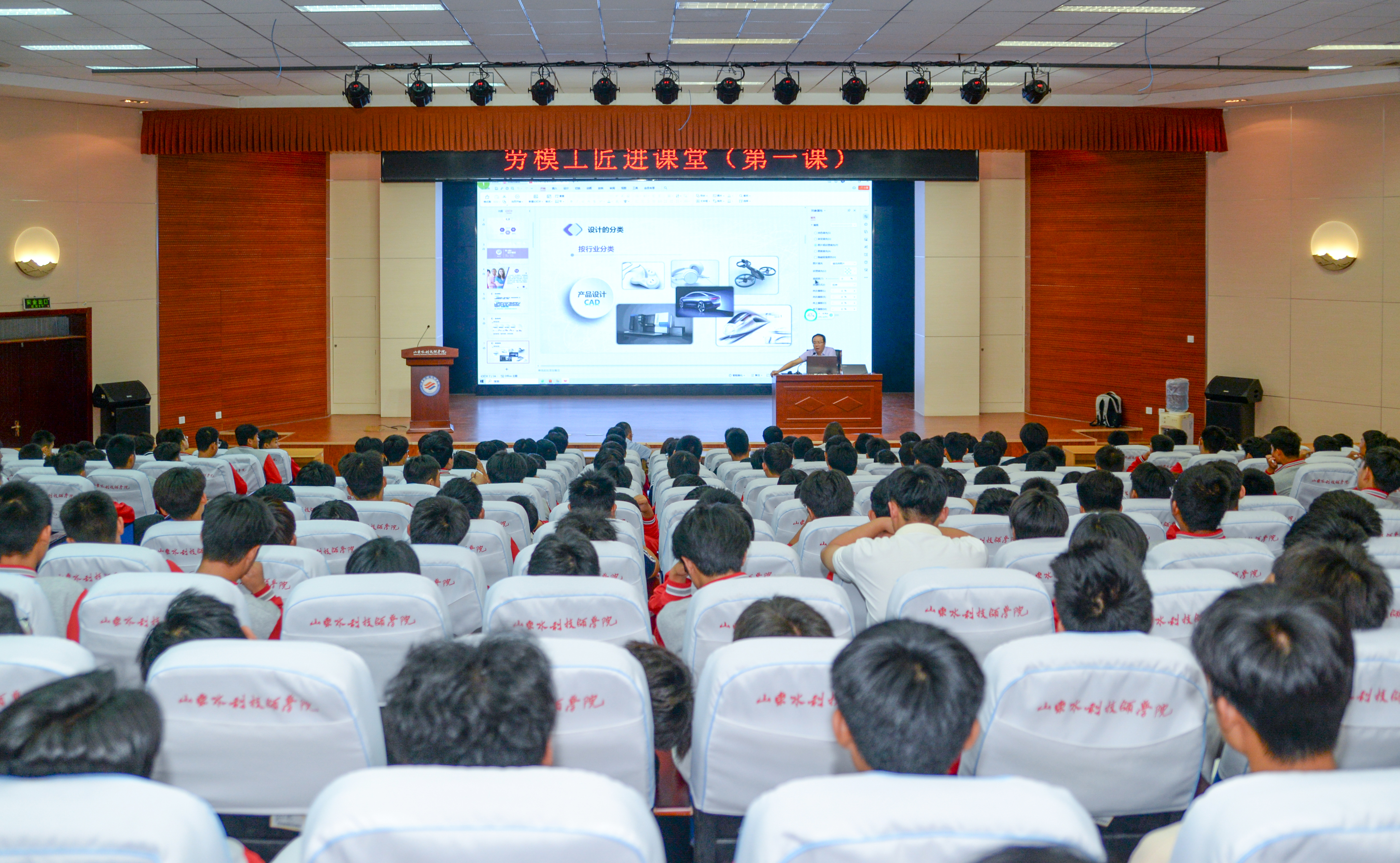 9月21日,由山东水利技师学院学生工作处举办的“劳模工匠进课堂”系列活动第一课——工业设计技术培训,在学术报告厅如期开讲,智能制造系全体学生听讲。