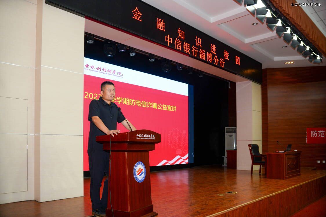 近日,山东水利技师学工处邀请中信银行淄博分行的反诈宣传工作人员,面向2023级新生开展防范电信网络诈骗公益讲座。