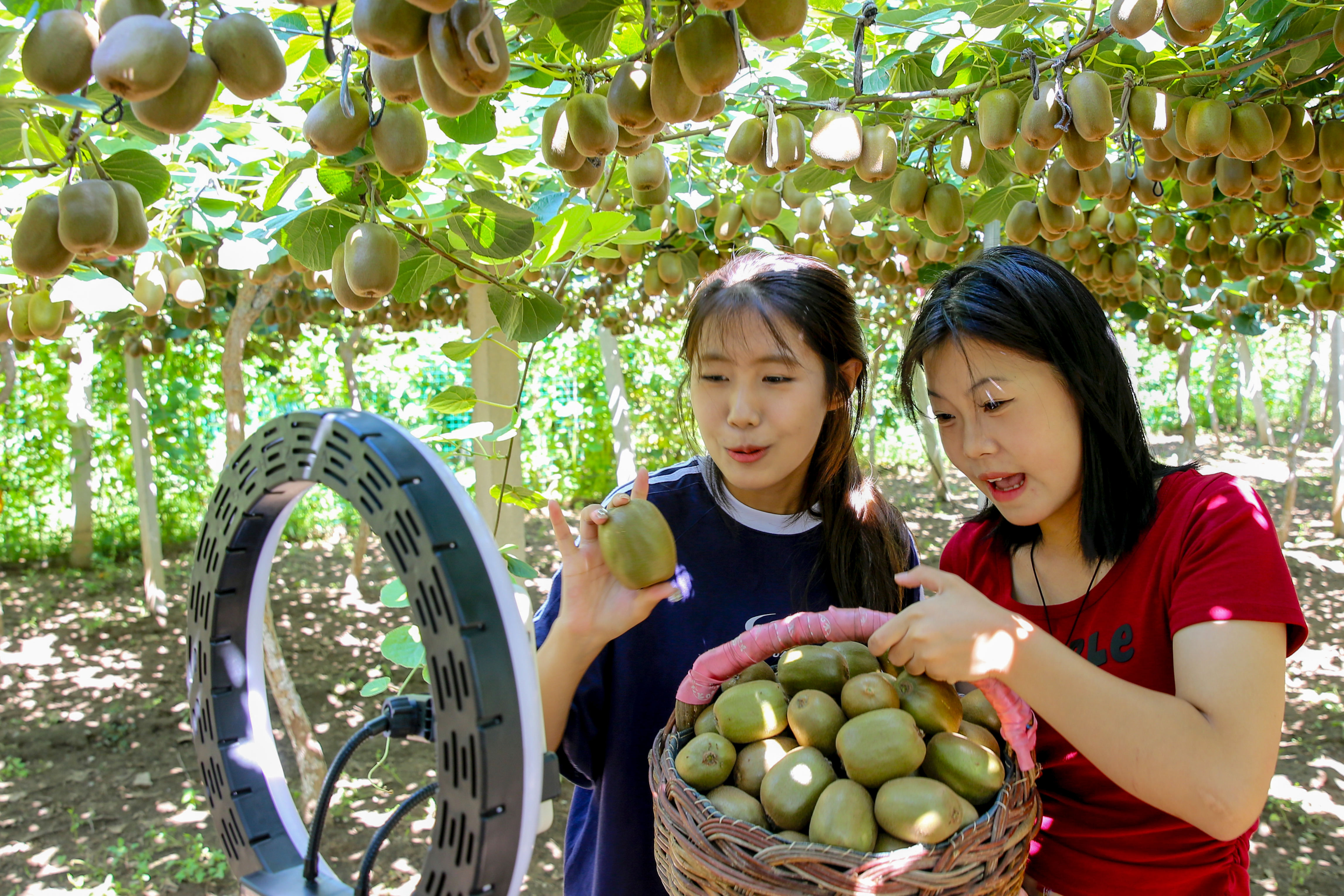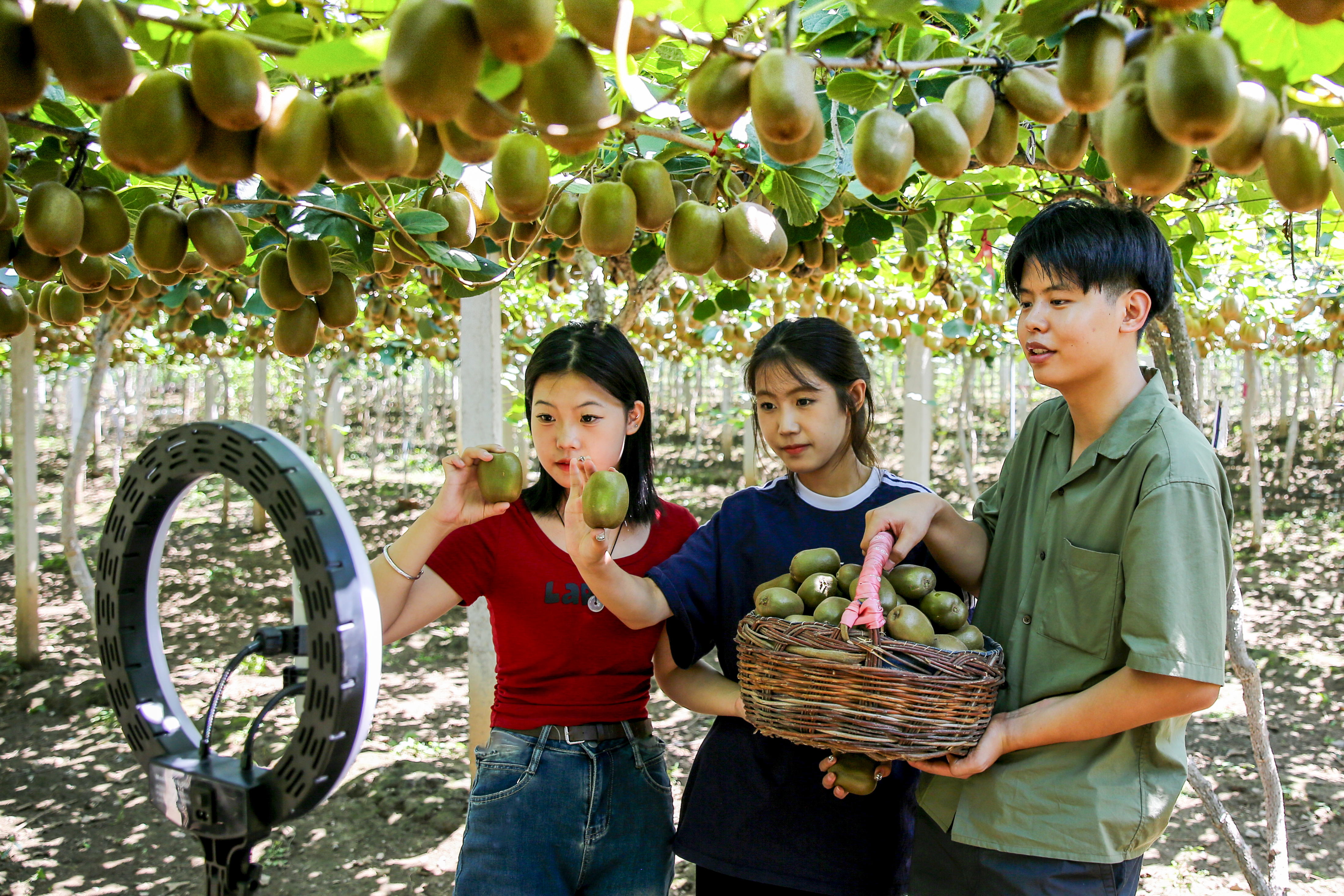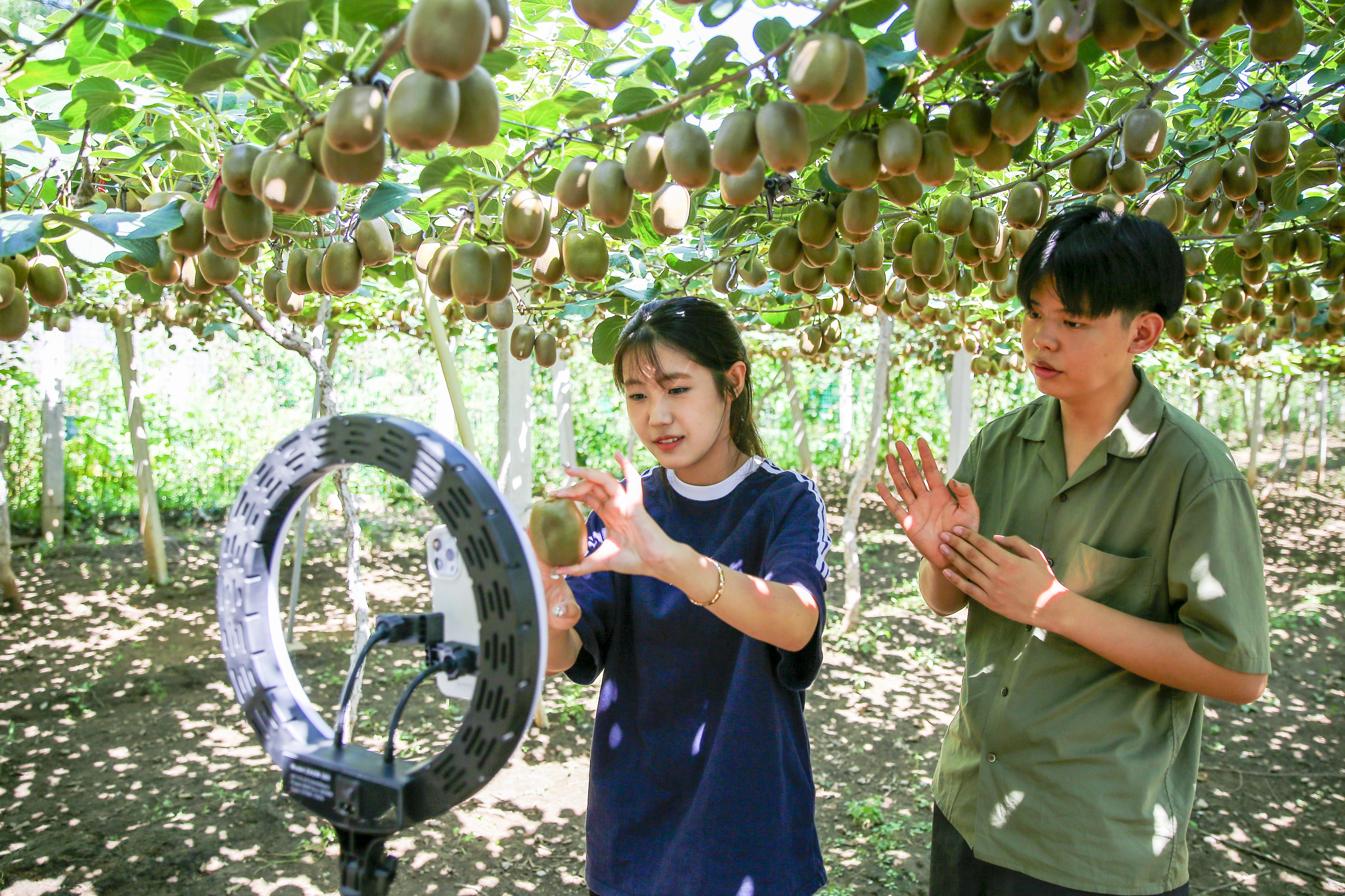 在东下册村猕猴桃生产基地,学院这支由电商、营销专业学生组成的直播团队,纷纷化身猕猴桃“代言人”,通过直播镜头,声情并茂地讲解猕猴桃品种、特点,让网友“零距离”了解太河镇特产猕猴桃的同时,鲜明传递出劳动成果来之不易当珍惜的倡导。