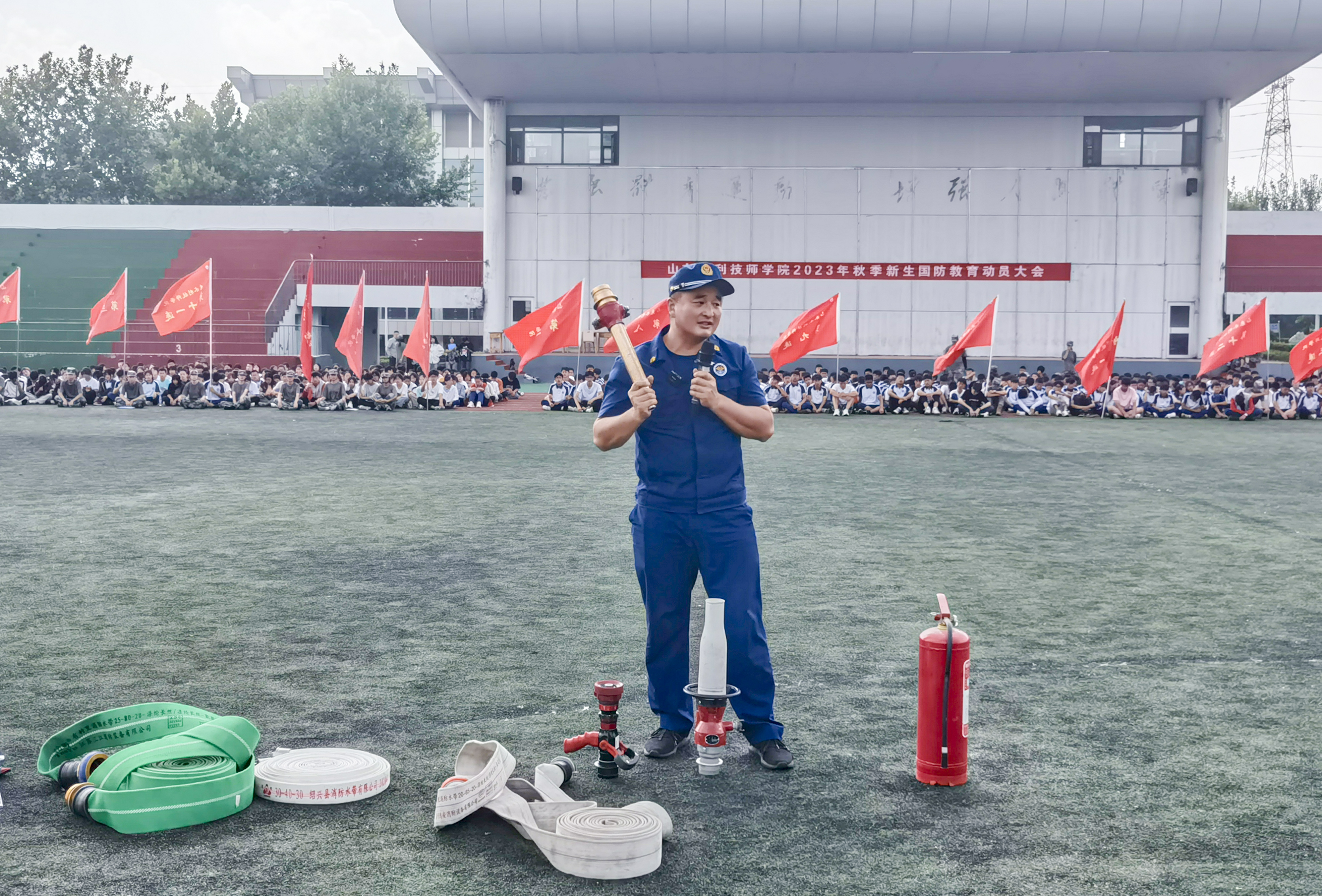 8月29日,山东水利技师学院安全管理处邀请淄川区消防救援大队,对学院2023级新生开展消防安全知识培训和实操演练。