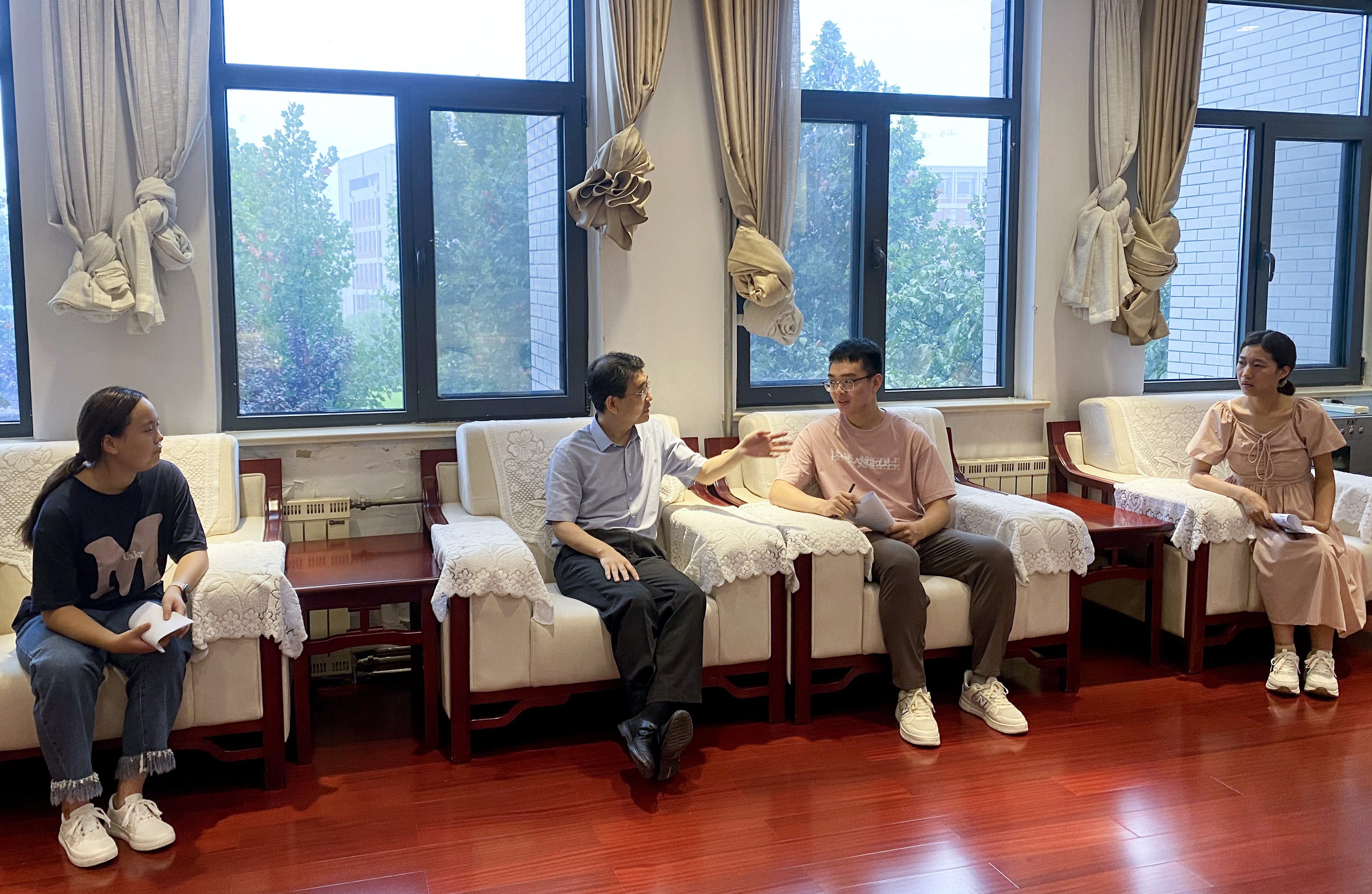 会前,孙大广与三位优秀学子面对面座谈,听取他们的情况介绍,并代表学院党委对他们圆梦大学表示祝贺。他指出,青年学子生逢伟大时代,正值人生最美好的青春年华,要牢记习近平总书记对青年一代的殷切嘱托,胸怀天下、志存高远,倍加珍惜大学的学习时光,继承和发扬吃苦耐劳、自力更生、艰苦奋斗的精神,在奋斗中创造精彩人生。