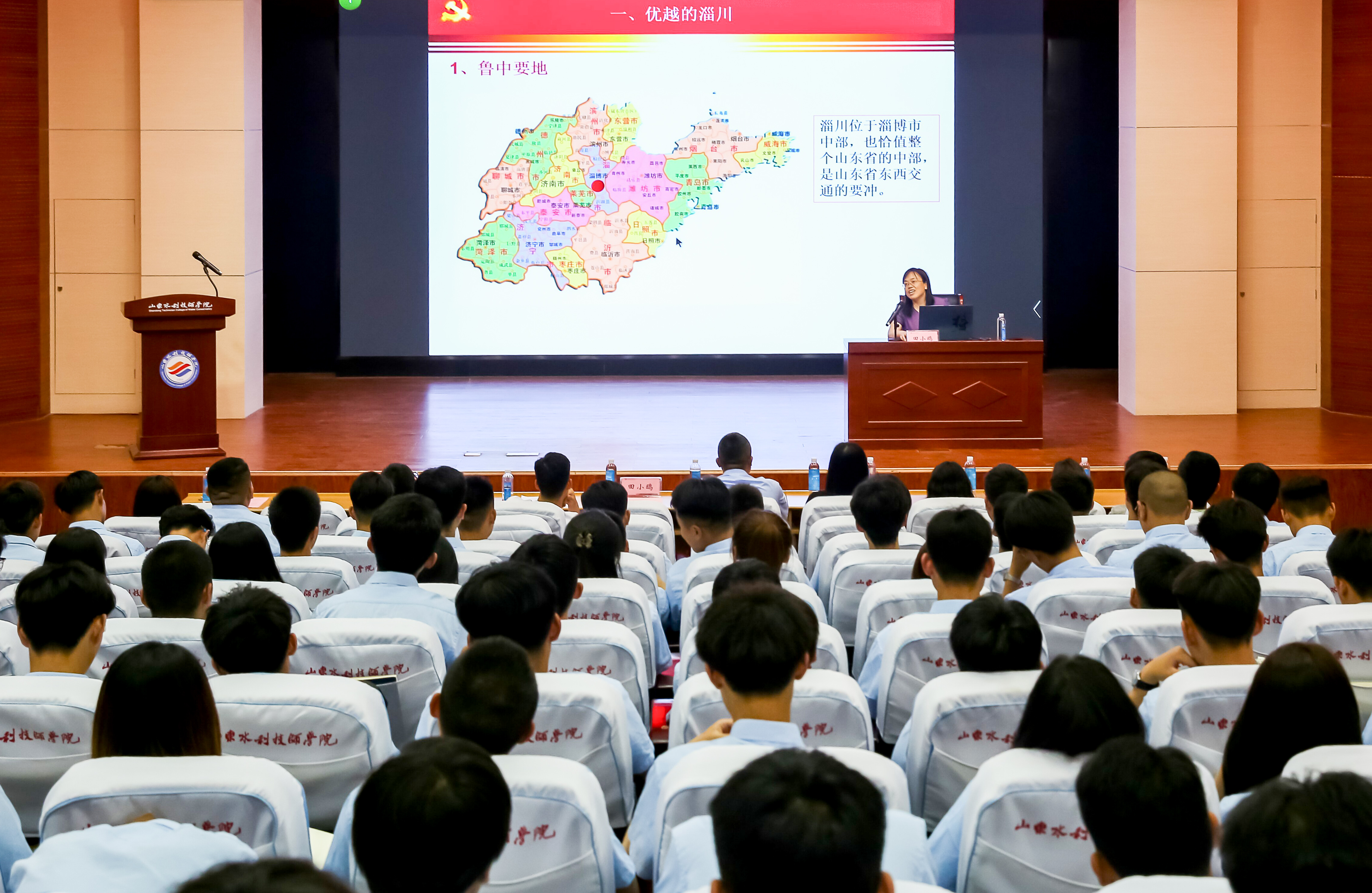 “淄博第一个党支部——‘中共淄博支部’在淄川洪山诞生,而后红船火种绵延淄博,渐成燎原之势。”仪式结束后,田小鸥以《百年淄川印记》为题,为新学员们讲授开班第一课,以淄川革命故事为主线,从淄川优越的地理位置、历史文化、革命故事等方面,讲述了淄川百年历史之大变革。