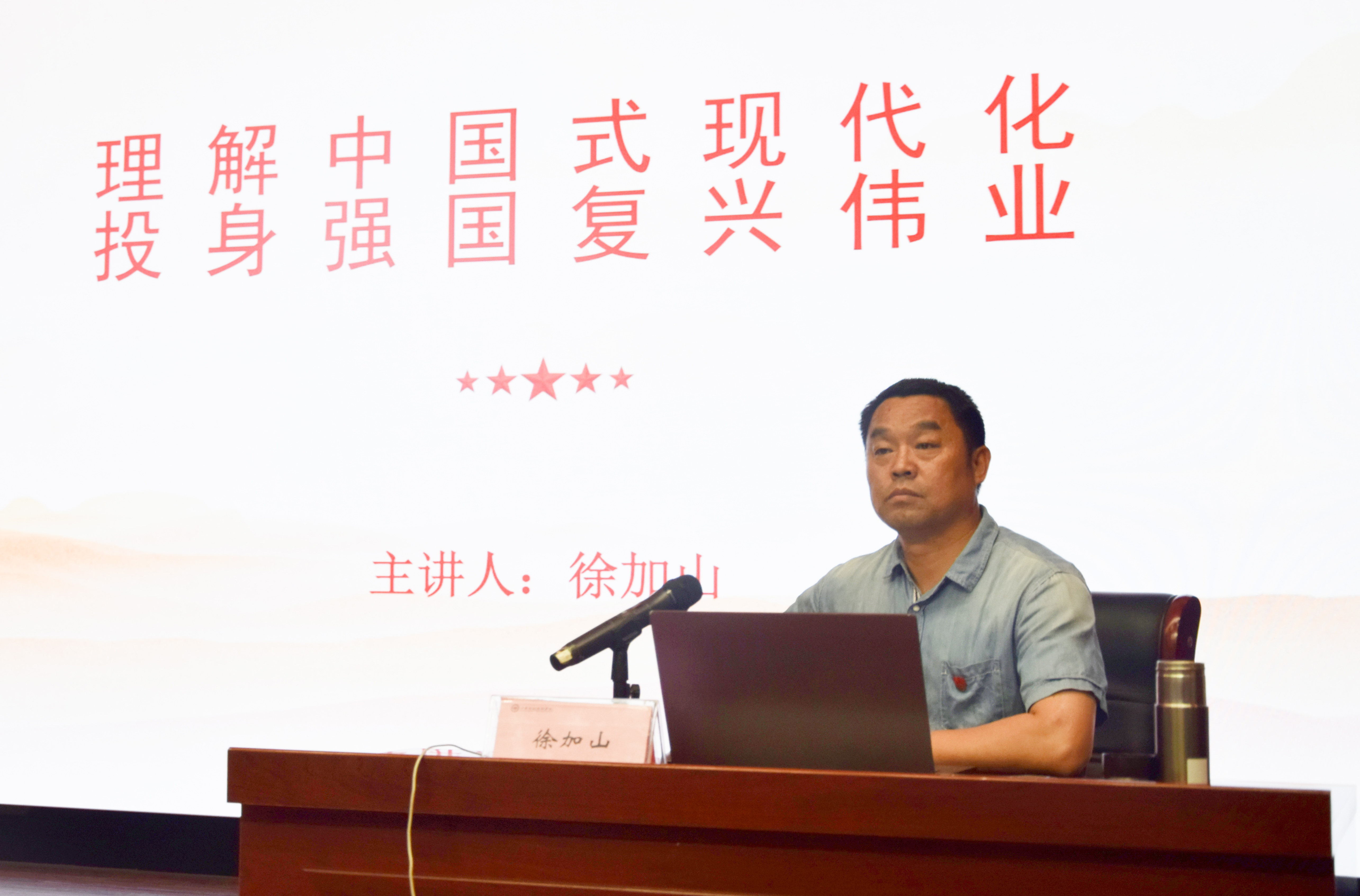 之后,学生处相关负责人以《理解中国式现代化 投身强国复兴伟业》为题,聚焦中国式现代化本质特征与本质要求的历史必然性、中国式现代化的实现条件,通过一个个生动的例子,引领大家深刻领悟、深入思考新时代的发展道路,为全体学员上了一堂思政大课。他勉励大家,中国式现代化道路要准备经受风高浪急、惊涛骇浪的考验。作为新时代青年,要增强忧患意识,做到居安思危、未雨绸缪。能在未来的学习道路上勤思、多问,争做一名赤忱纯粹、思想先进、勇于担当的马克思主义者。