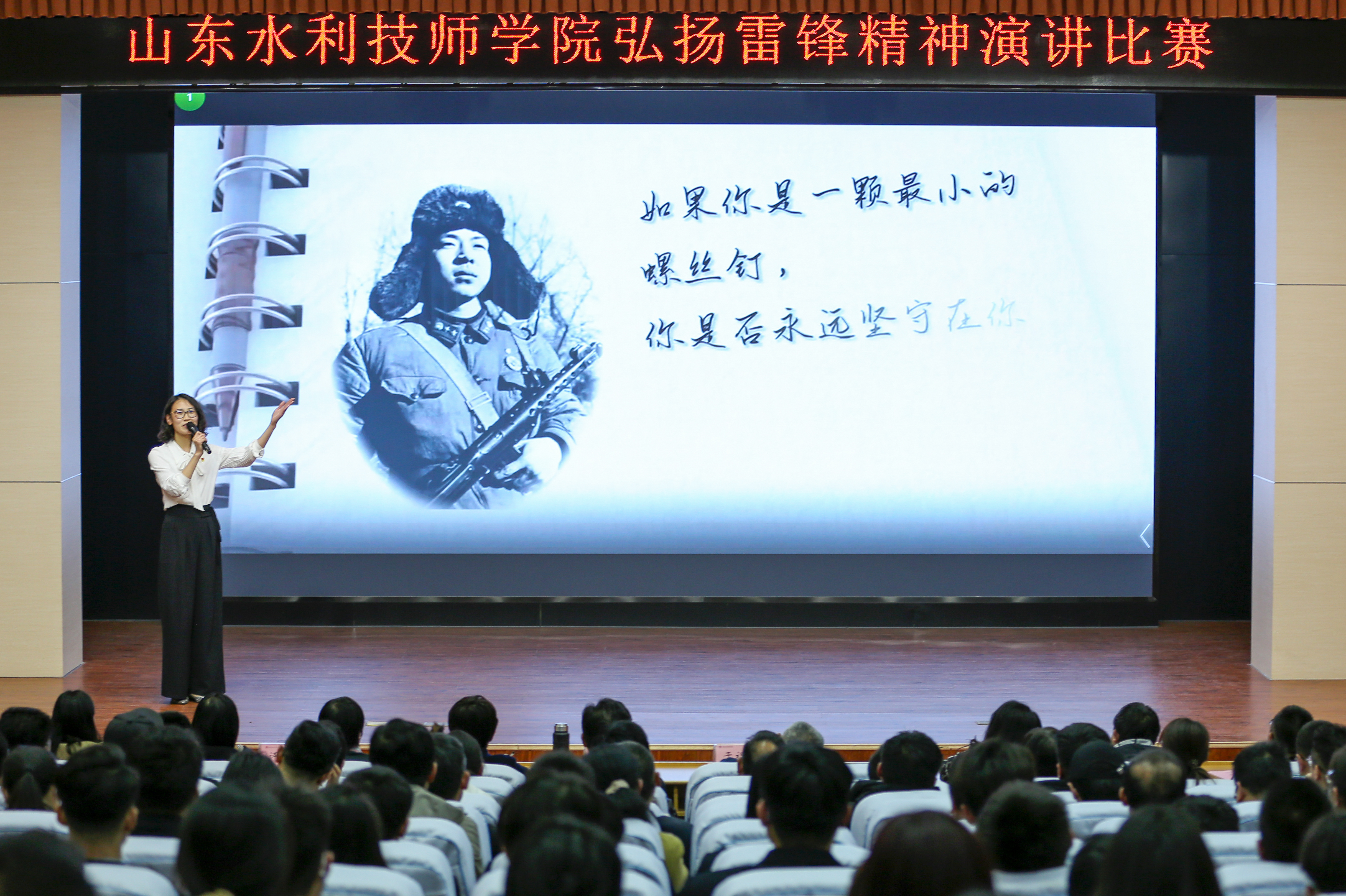 参赛选手作为追“锋”人,他们有的讲述身边的学雷锋典型,有的阐述雷锋精神的深刻内涵,有的从平凡的事迹中发掘雷锋精神的时代特征。各具特点的精彩演讲,充分展示了学院青年昂扬向上的精神风貌,真切表达了他们自觉践行雷锋精神的信念和决心,感染了在场的每一位师生,赢得了阵阵热烈掌声。