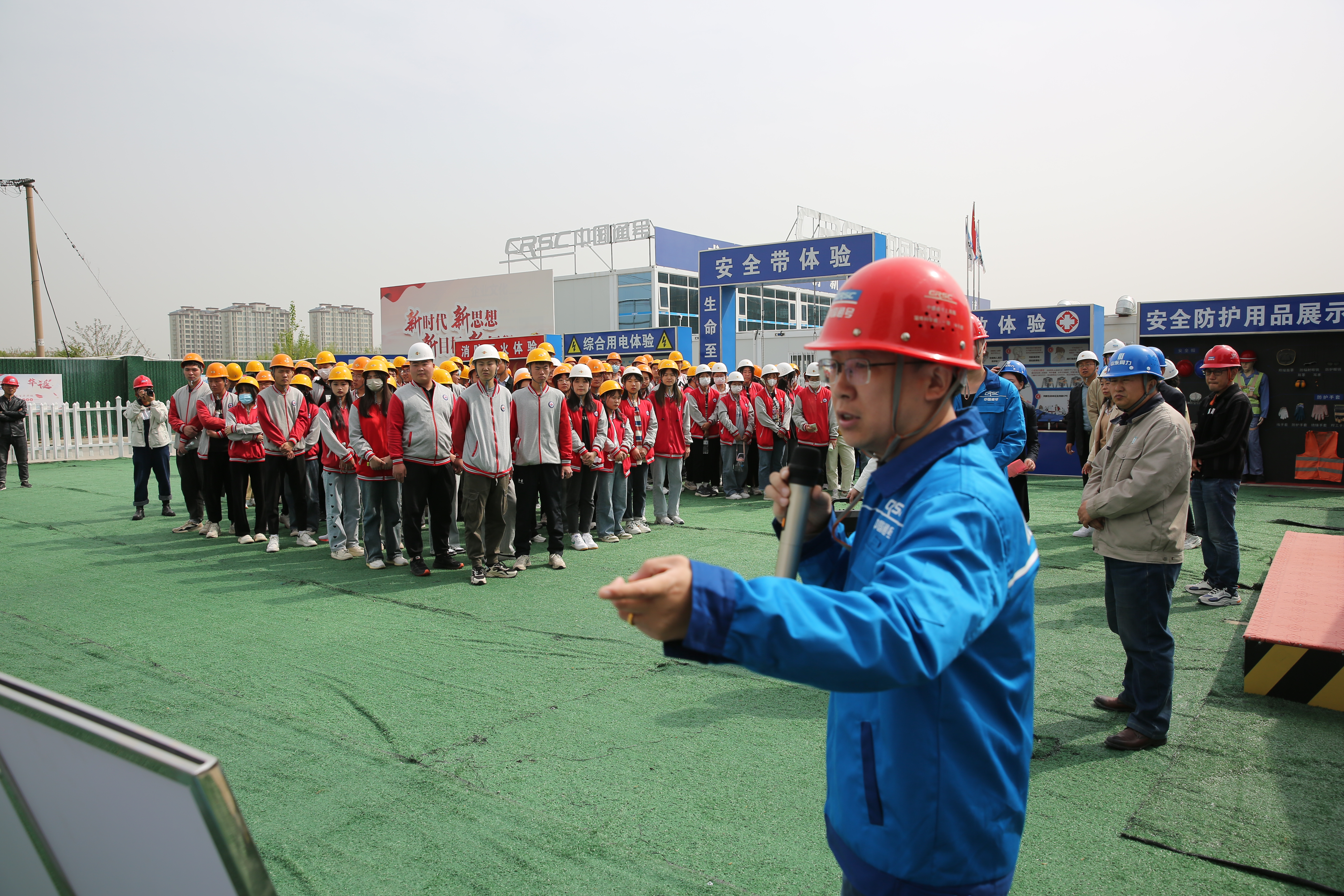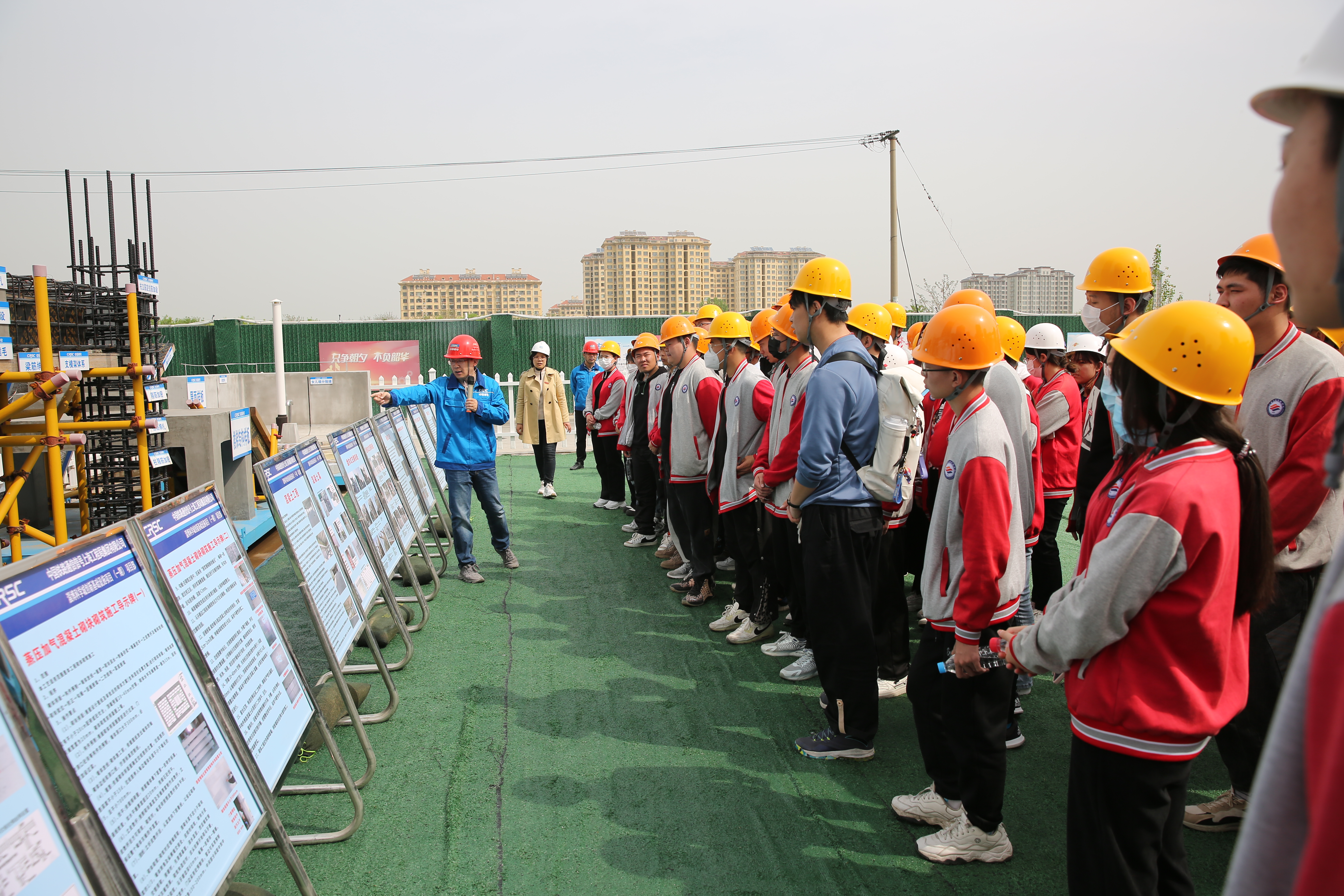 活动伊始,山东同力建设项目管理有限公司相关负责人对企业文化和项目情况作了简要介绍,学院教师对项目样本间结构作了细致讲解。随后,中国通号集团质安部负责人带领学生开展了建筑施工安全教育,通过在安全体验区触电模拟体验,让同学们亲身感受了现场安全的重要性。他还对项目的智慧工地、建筑节能材料使用、建筑施工新技术等方面,向同学们做了专业讲解,让他们对建筑结构及施工技术有了更为直观、形象的认知。
