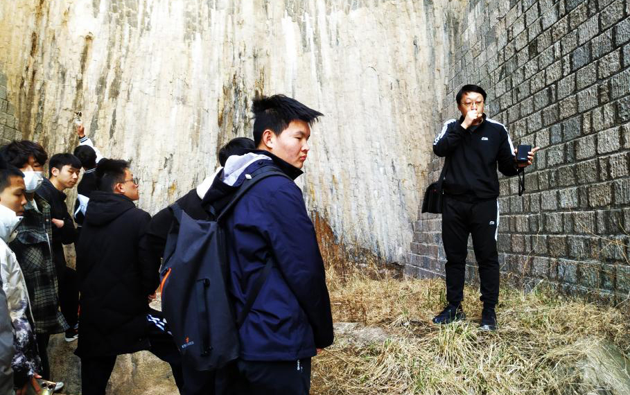 3月13日,学生们前往亚洲最大的浆砌石连拱坝——潍坊市临朐县淌水崖水库进行认识实习。过程中,带队老师向学生们介绍了淌水崖水库大坝的主题结构类型、溢洪道、位移标点等重力坝所特有的专业知识,讲述了淌水崖水库在建造时工人们的艰辛,让学生们深刻认识到干好水利工程必须具备的精神——工匠精神。休息之余,两位老师还组织学生在当地进行了节水护水知识宣传,润物细无声地将课程思政融入到专业教学中。
