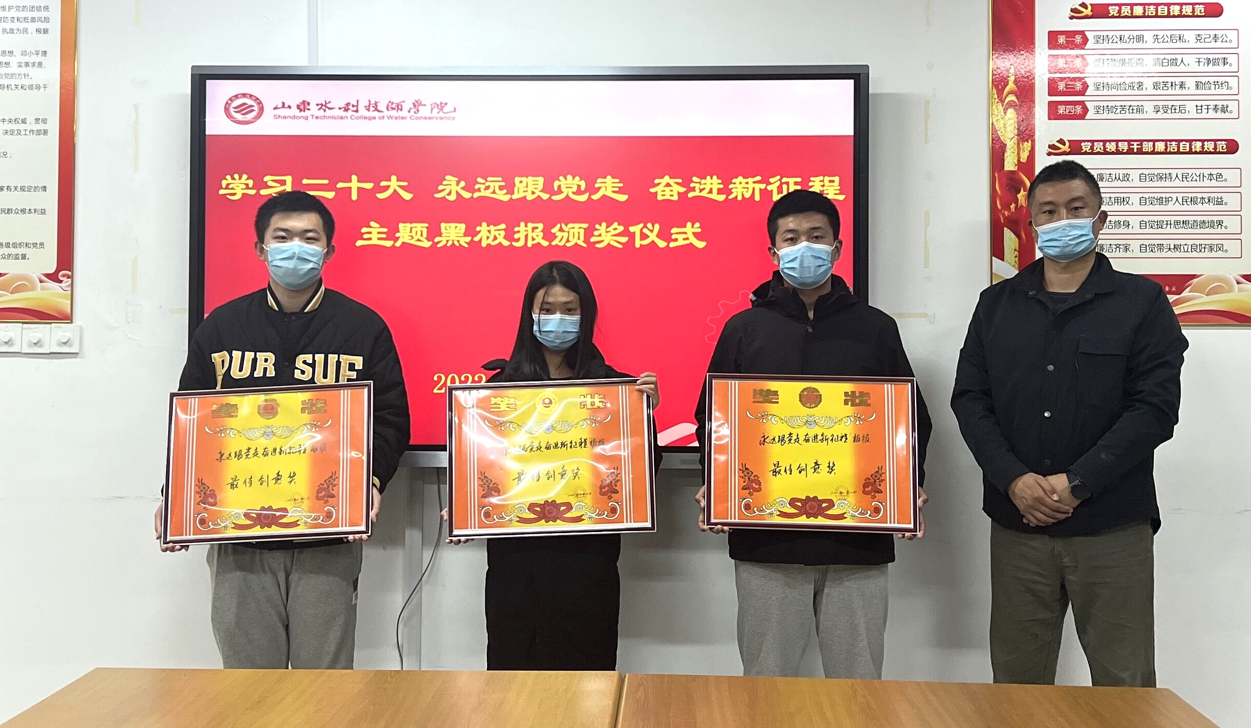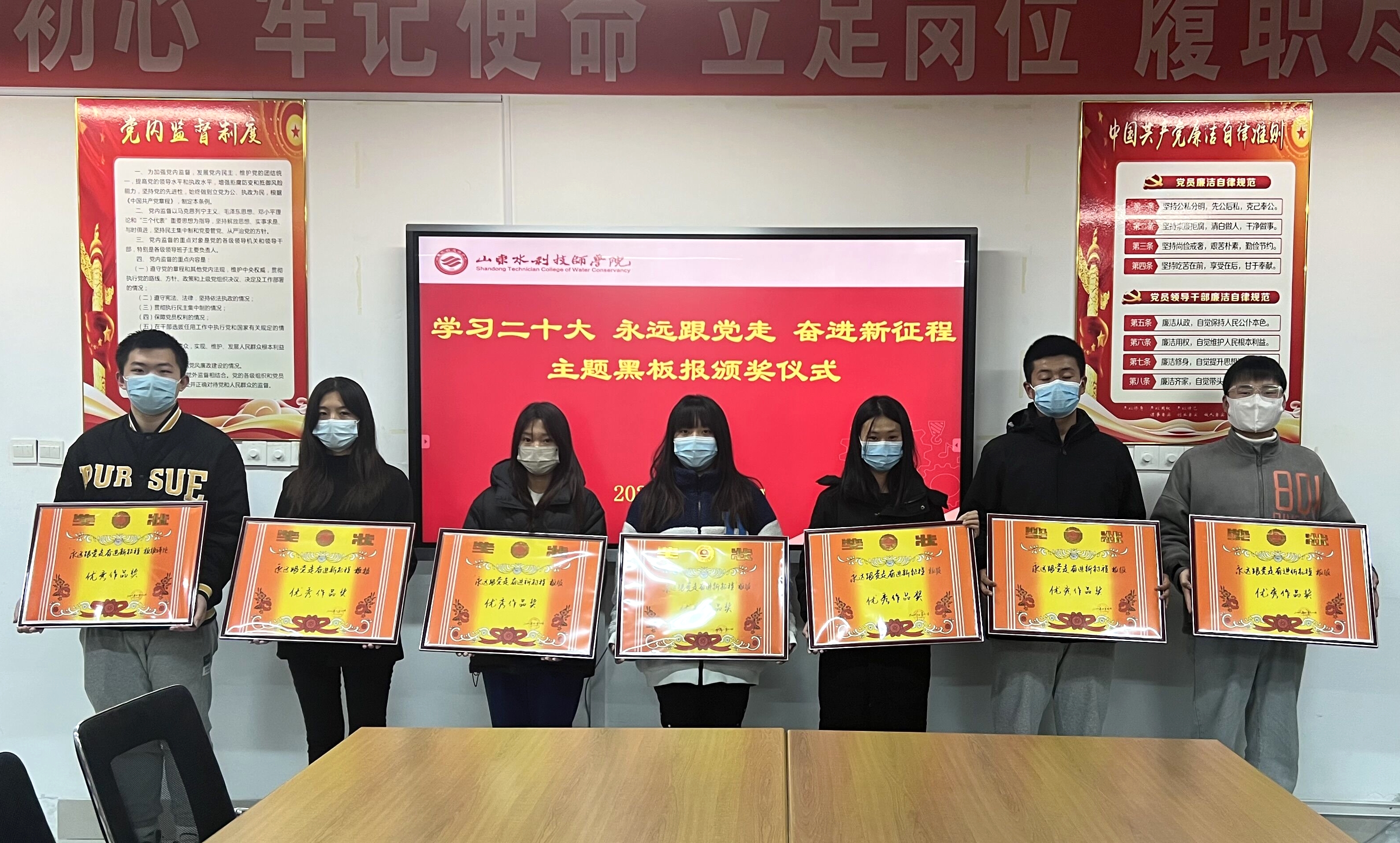 近日,山东水利技师学院团委充分发挥好“黑板报”传统宣传阵地作用,举办了“学习二十大 永远跟党走 奋进新征程”主题板报创作评比活动,持续营造“学习报告精神、热议报告内容、畅谈感悟体会”的浓厚氛围。