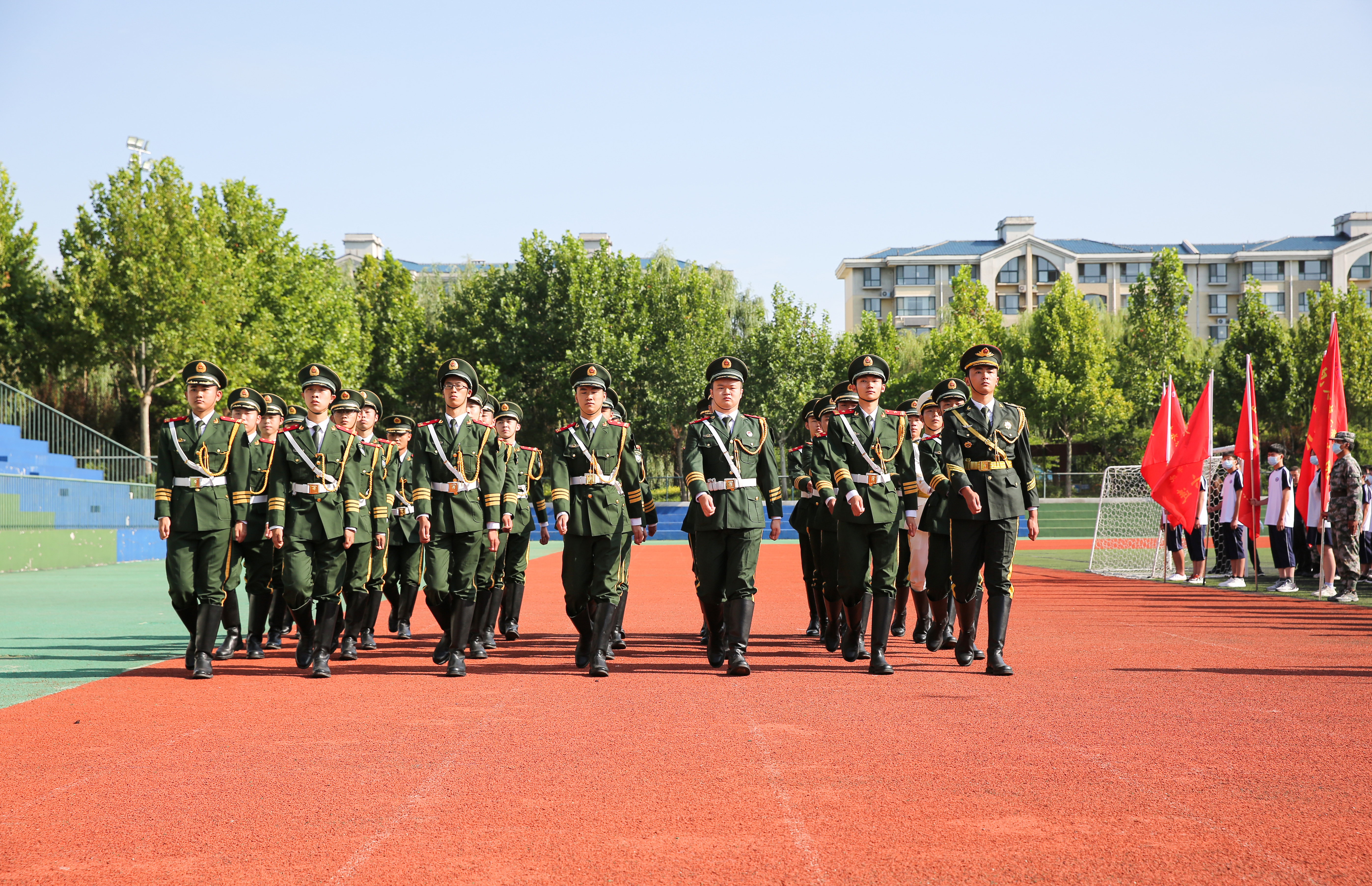 教练员代表、学生教官代表、新生代表依次上台发言,以饱满的精神状态和良好的军人形象,呼吁新生通过本次军训锤炼不畏艰难、顽强拼搏的意志品质。军训动员大会结束后,2022级全体新生将开始为期10天的队列、步法、内务整理、分列式等军事训练,并接受校情校纪、准军事化管理、疫情教育、安全防范、国防常识、校规校纪、应急救护等方面的教育。