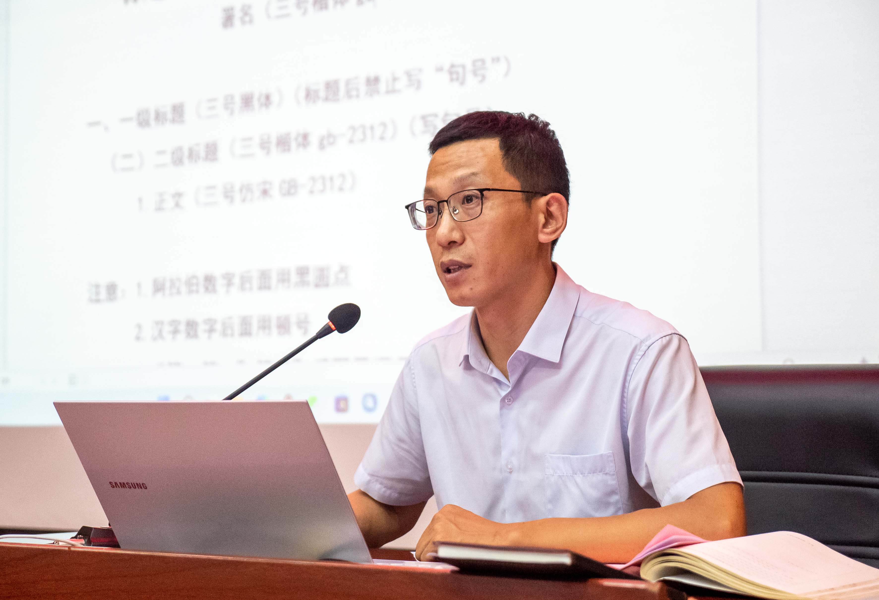 由办公室副主任丁莹主讲的《公文格式应用及腾讯会议操作》,开启了本次培训的大幕。他首先为大家阐释了党政机关公文写作规范的重要性,以及常见问题和注意事项。随后,对公文用纸的幅面和版面要求、公文印刷与装订、公文格式各要素编排、公文写作中最常见的标点错误,以及腾讯会议直播操作进行了详解,满满的“干货”,引导大家提升认知,学以致用。
